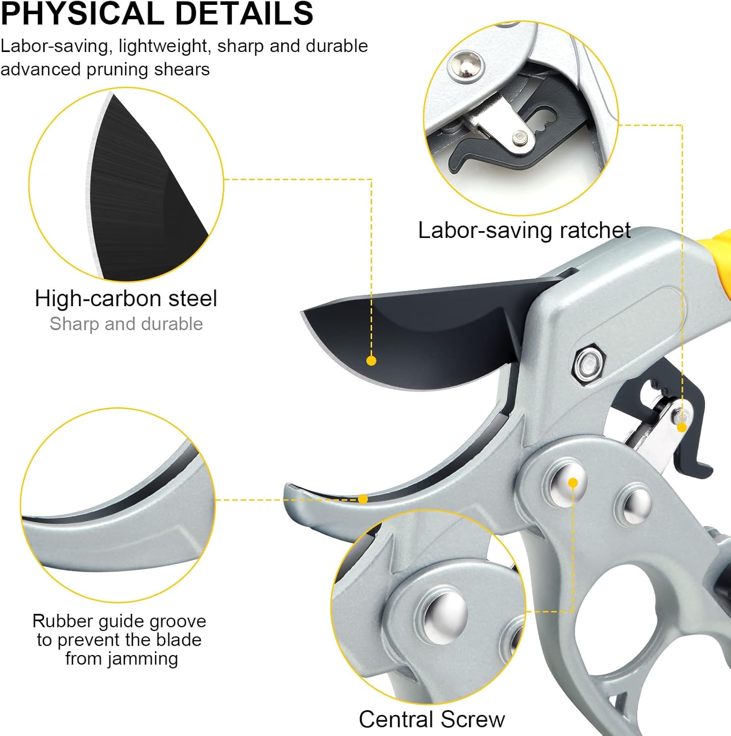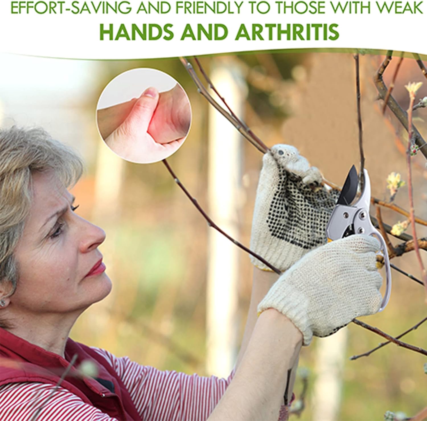 - đGARDENING GIFTS AND BRAND GUARANTEE: This pair of scissors is a gift for gardening enthusiasts because of its easy-to-lock feature and comfortable handle design. Among horticulturists, it's a popular choice for Christmas gifts. we do not have to worry about the quality and after-sales problems of this brand protection pruning scissors.
