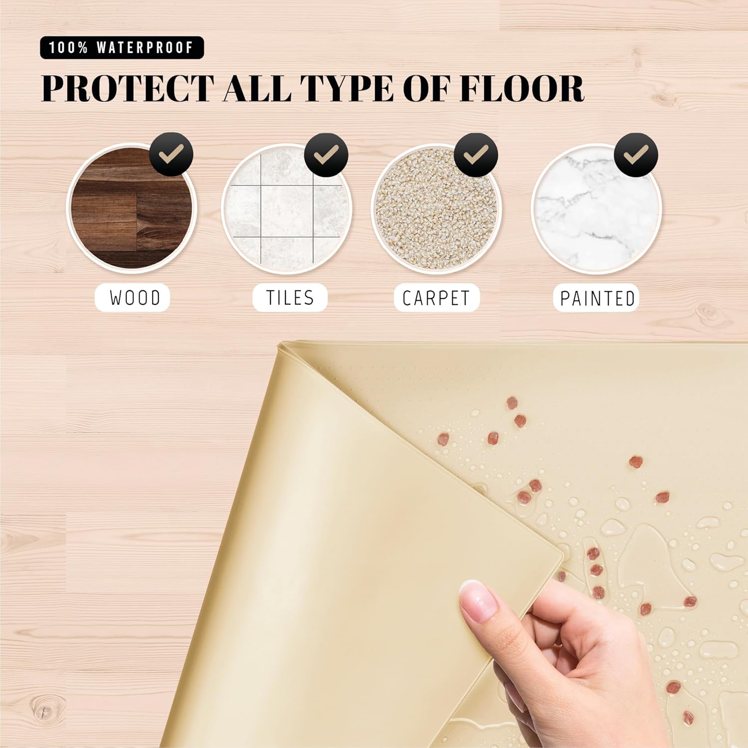 - Floor Protection: Protect your wood floor with our waterproof dog feeding mat. Thick and durable, this mat shields against spills and stains from dog or cat food and water bowls. Say goodbye to mildew worries. Ideal for pet owners who value clean and pristine floors