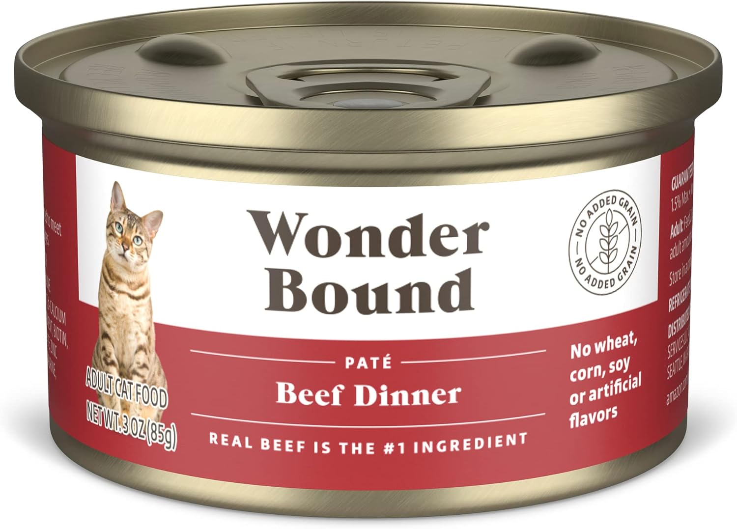 Amazon Brand - Wonder Bound Wet Cat Food, Paté, No Added Grain, 3 oz cans, Pack of 24 (Beef)
