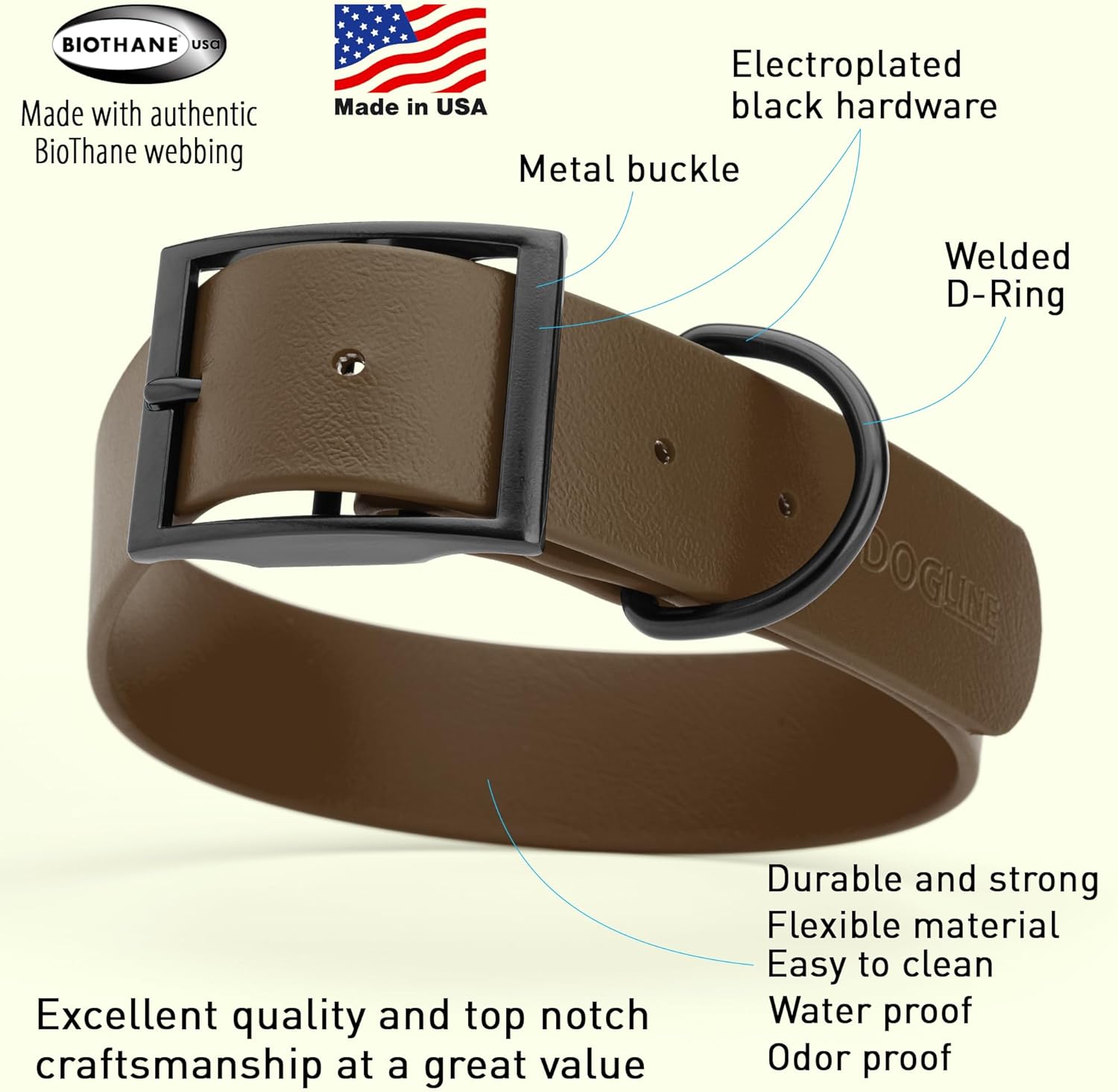 Dogline Biothane Waterproof Dog Collar Strong Coated Nylon Webbing with Black Hardware Odor- Proof for Easy Care Easy to Clean High Performance Fits Small Medium or Large Dogs, Dark Chocolate Brown