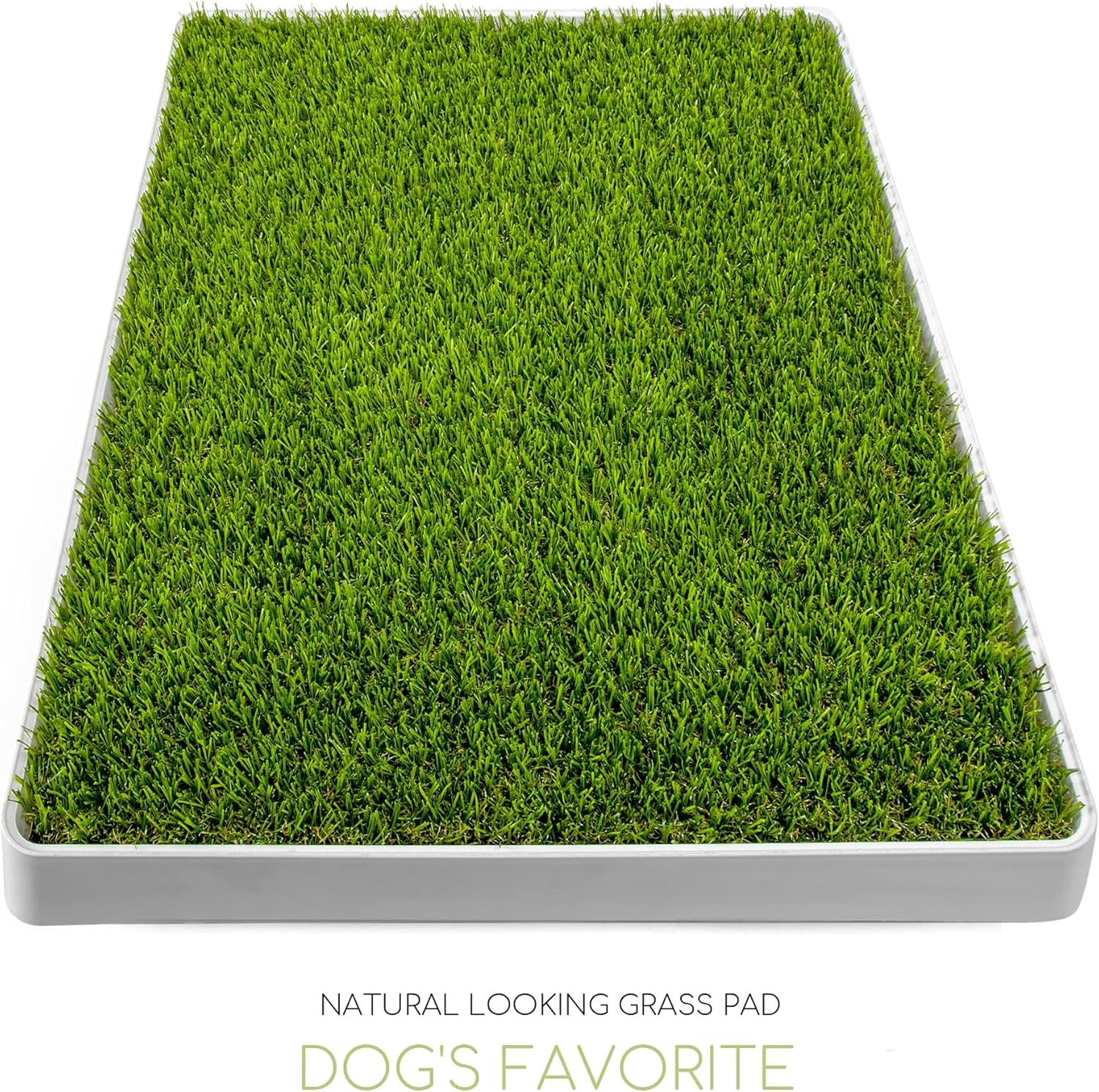 - REALISTIC ARTIFICIAL GRASS! Weâve designed our Indoor Dog Potty with super realistic artificial grass pee pad that dogs will love & looks just like normal grass, for easy dog potty training and keeping urine & messes off clean carpets for fewer cleanups!