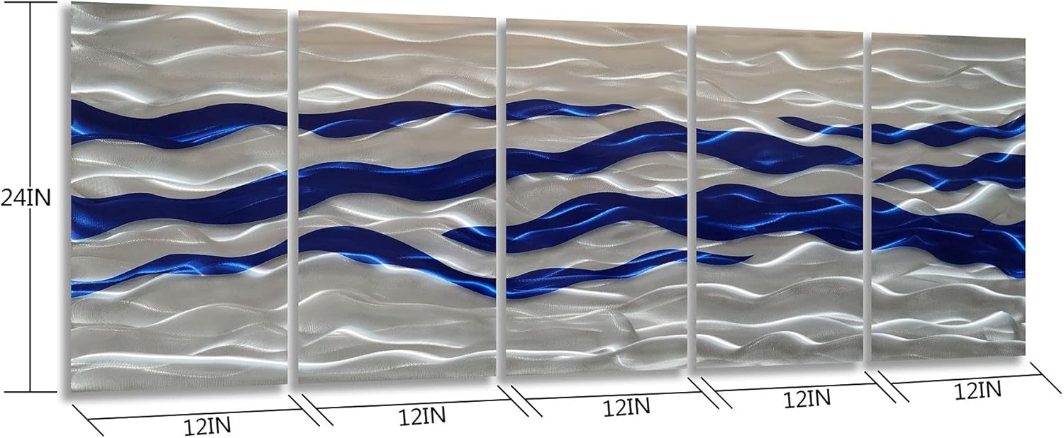 SYGALLERIER Abstract Coastal Metal Wall Art Handcrafted Big 3D Blue and Silver Artwork Modern Sea Waves Pictures Contemporary Sculpture for Living Room Bedroom Bathroom Decor