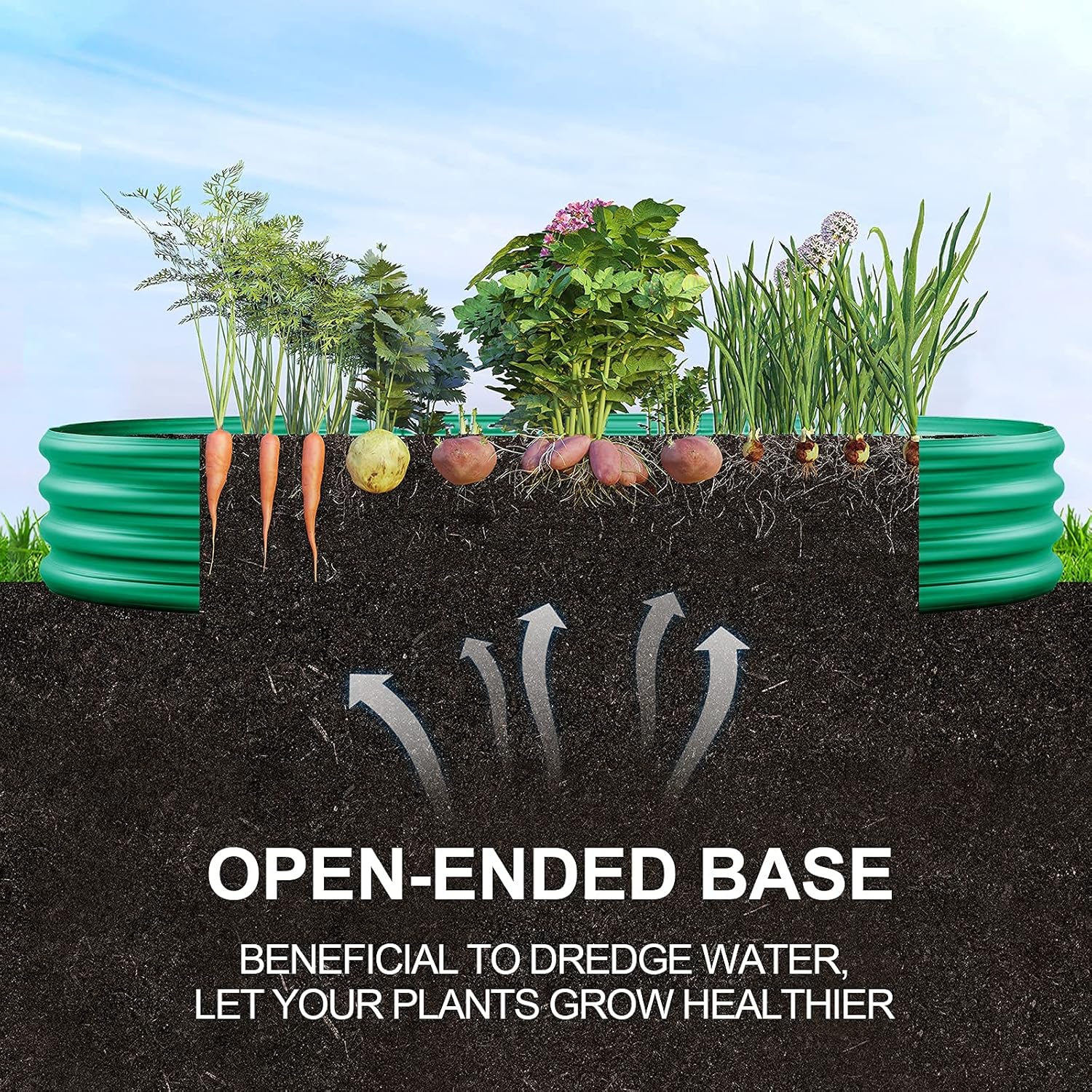 - Open base: This green galvanized raised garden beds for vegetables large metal planter box is designed with an open base, which can effectively avoid water accumulation and decay, protect the roots of plants, and allow the roots to better absorb nutrients