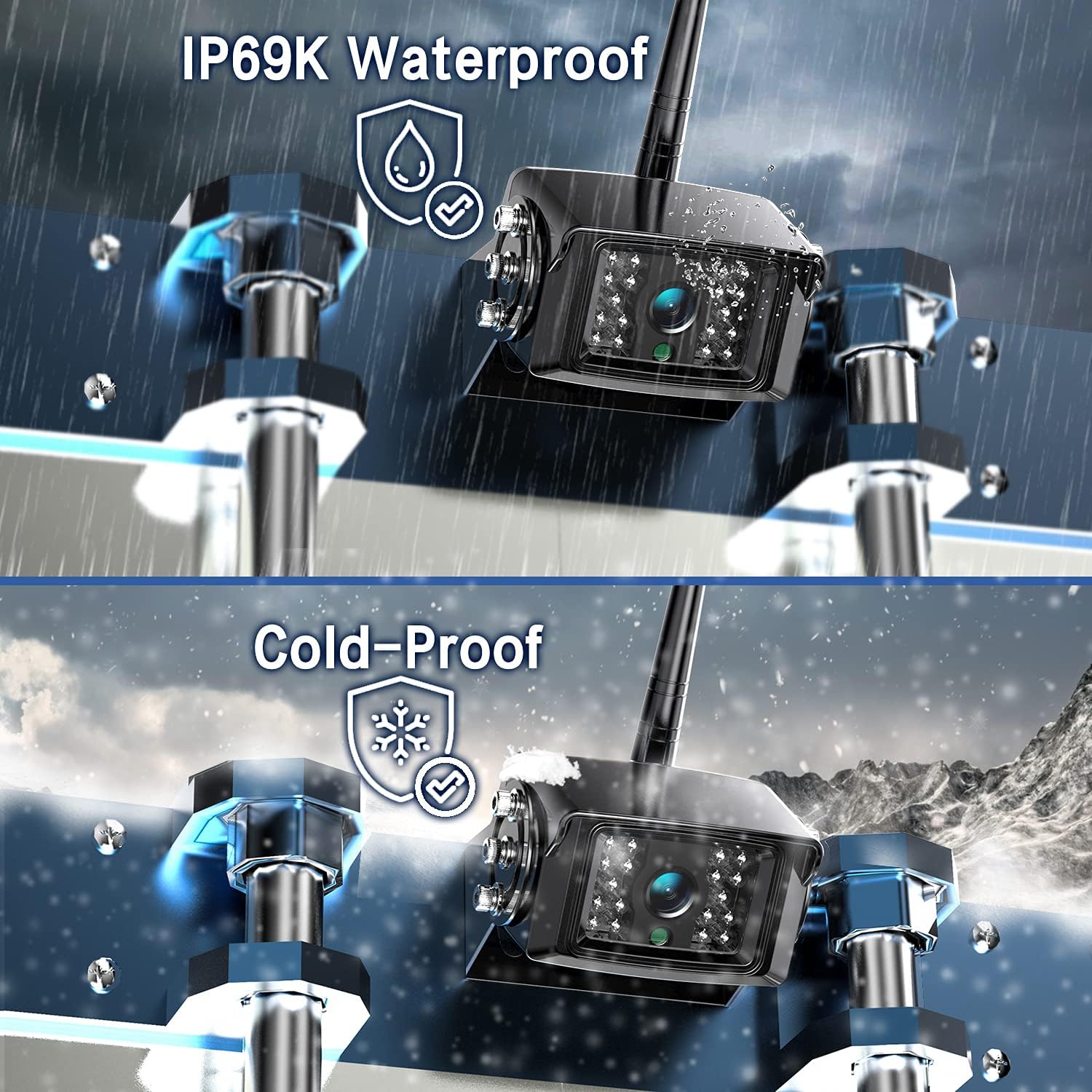 - 【IP69 Waterproof & Loop Record】Whether you're driving on a rainy-day, snowy-day, or foggy-day, ZEROXCLUB IP69K Waterproof Backup Camera can handle it. Buit-in loop record function, the wireless rear view camera will automatically overwrite the oldest recorded video when the memory card is full, protecting your safety and security while driving, backuping up and stationary.