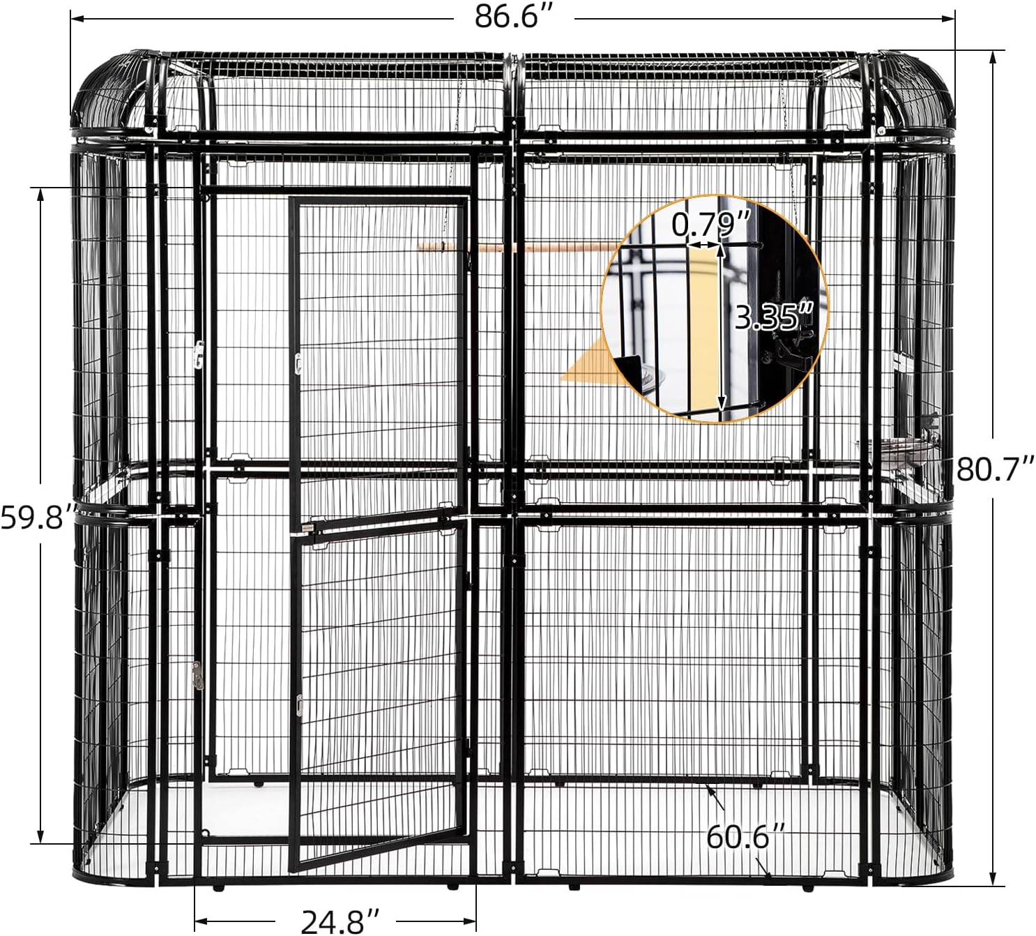 - Need to Assemble - The cage comes with three separate packages. Overall Size: 86.5âL x 60.5âW x 80.39âH;Door size: 59.8"H X 24.8"W
