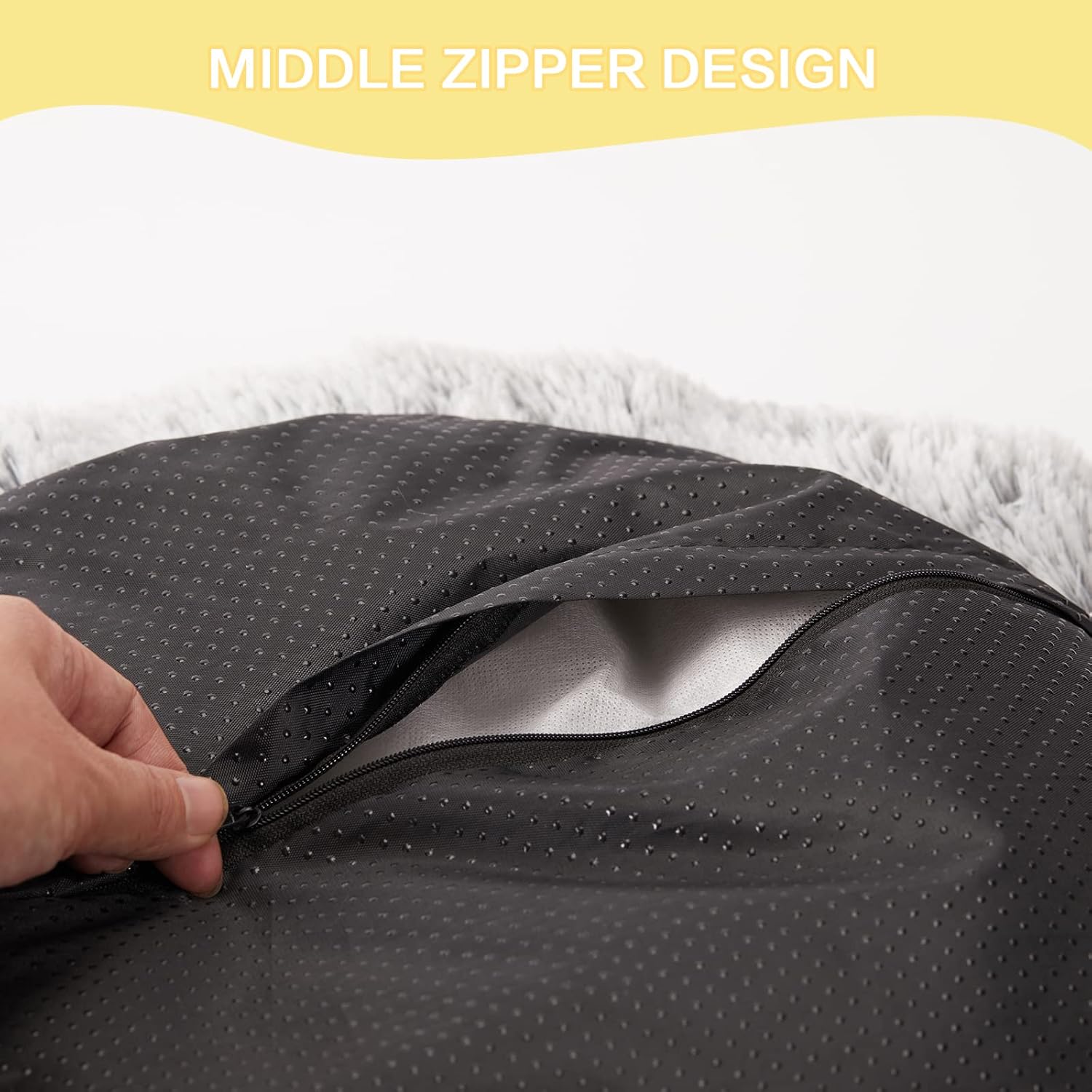 - [Easy Care] This plush dog bed is equiped with a middle zipper on the bottom. The cover is machine washable for your convenience. Tumble dry at low temperature. Do not bleach. Please shake and pat the fuzzy dog bed to make completely fluffy before use.
