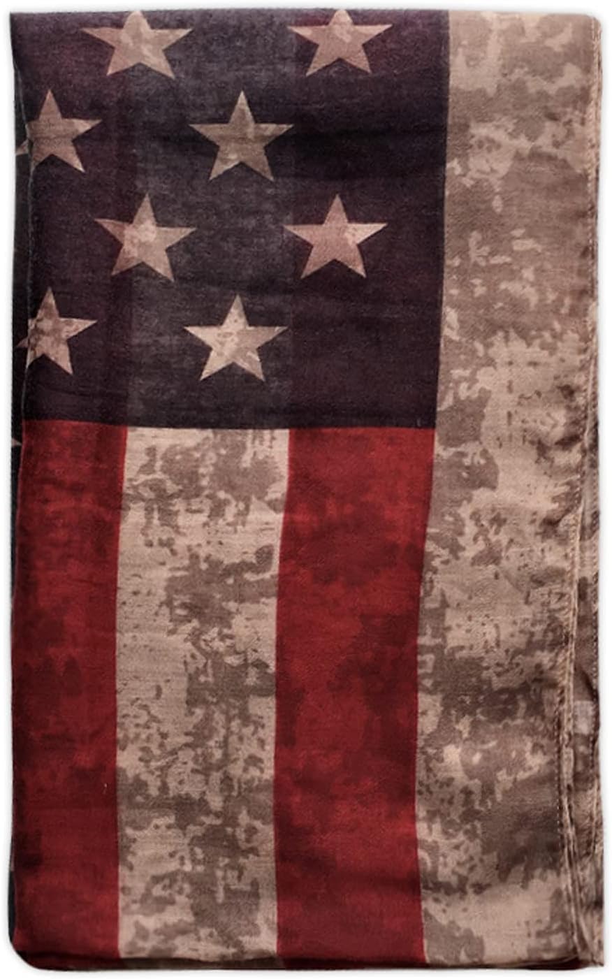 - The faded USA flag scarf is a great addition to your collection of fashion accessories. The lightweight wrap scarfs can be worn around hair, head, face, neck, shoulder or waist. The elegant scarf for handbag or hat are funny and adorable.
