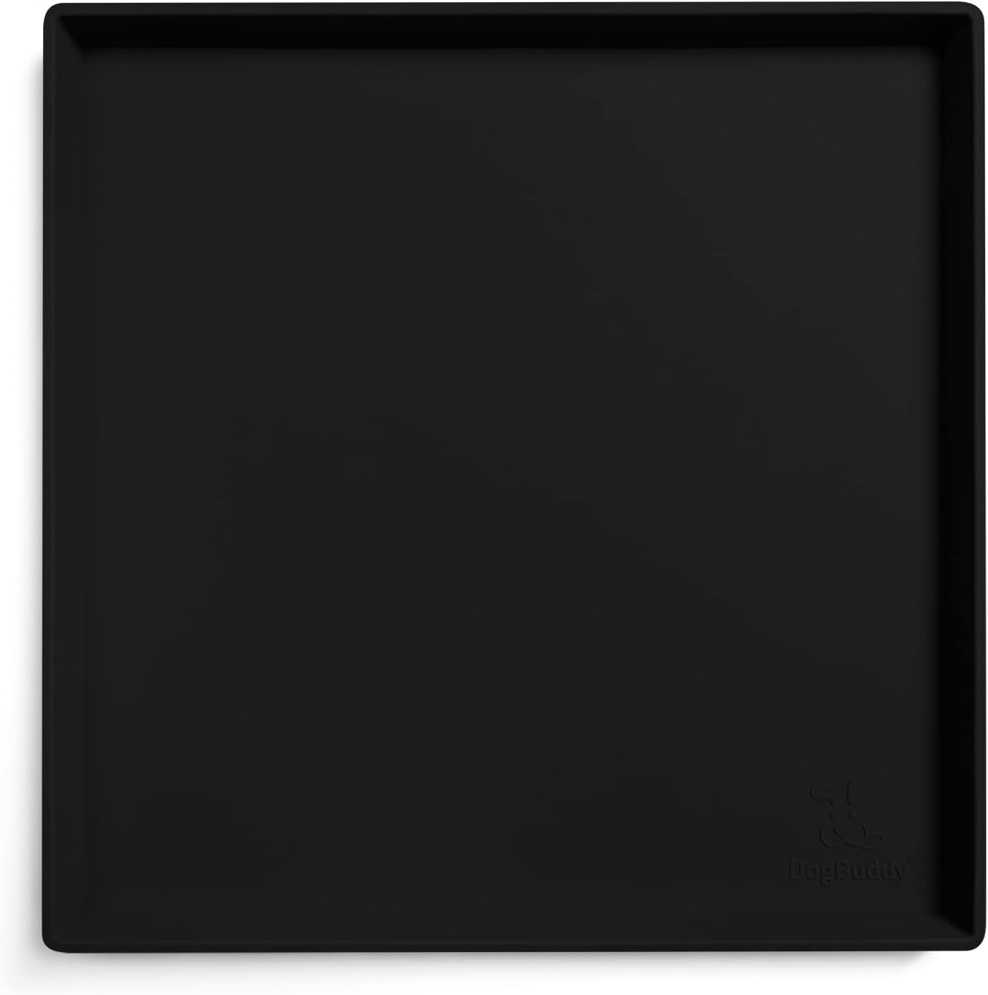 DogBuddy Dog Food Mat – Waterproof Dog Bowl Mat for Food and Water, Silicone Pet Feeding Mats for Floors, Non-Slip Placemat with High Edges for Dogs Bowls, Puppy Essentials (XS: 11" x 11", Black)