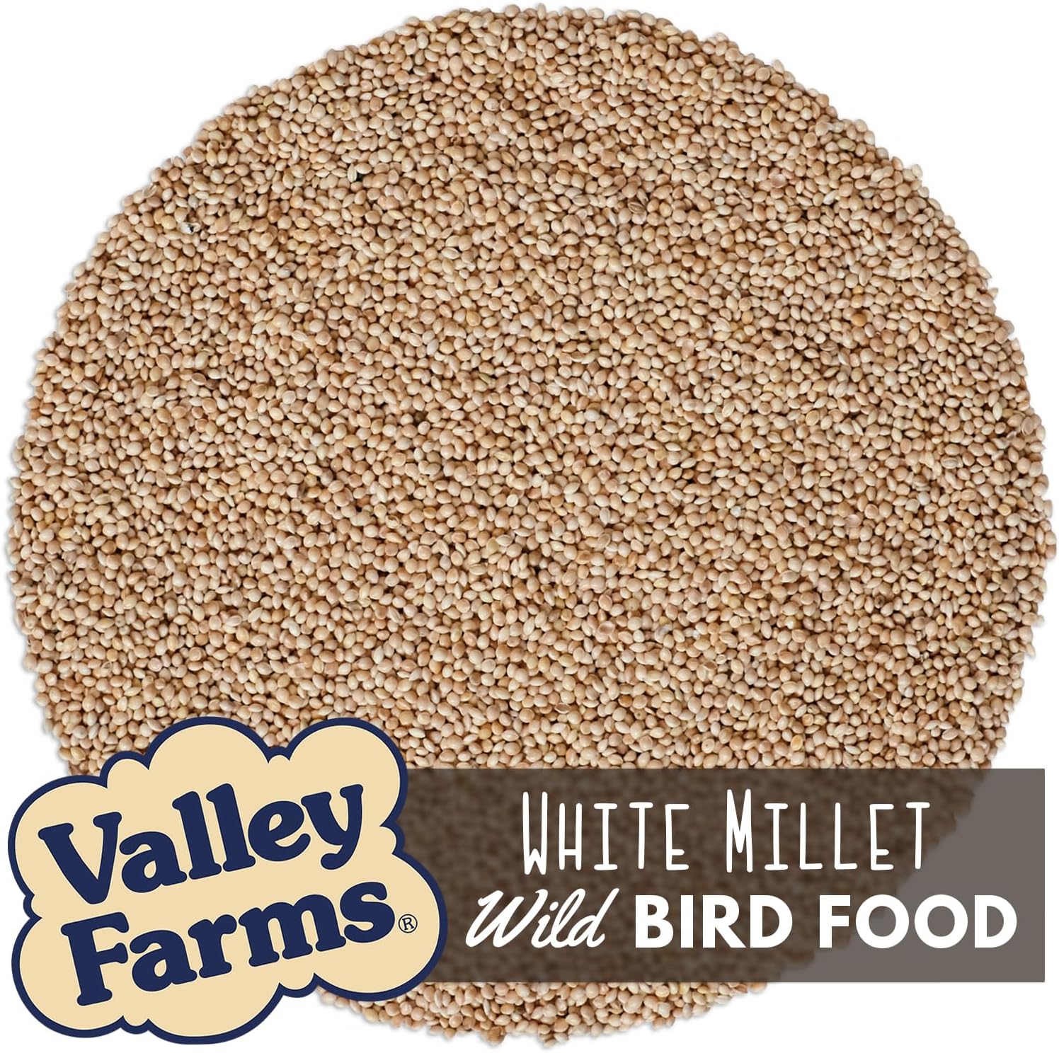 - 🧹White millet makes very little mess. The husks are thin and easily blow away in the wind. Valley Farms white millet is vacuumed cleaned and always fresh.