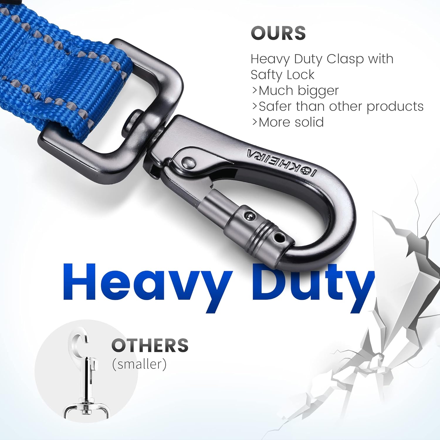 - DURABILITY NYLON MATERIAL AND REFLECTIVE: IOKHEIRA dog leash for large dogs is made of strongest high density webbing to add durability. Our highly reflective dog leash with traffic double handle keeps you both safe and high visibility on your late-evening walks at night. This wear-resistant nylon dog leash is great for medium or large dogs walking, running or training and durable enough to withstand the pulling force of large pooches up to 200 lb. Suitable for big, medium, small dogs and puppy.