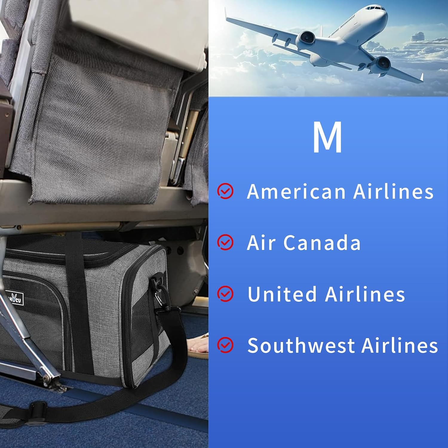 - đăFLIGHT & CAR TRAVELă: Folded size: 17.1 x 11.4 x 3.4 inches; Unfolded size: 17.7 x 11 x 11 inches. Wakytu pet carrier meets United Airlines/Alaska Airlines/Air Canada/Delta Airlines boarding requirements and can be placed under the front seat in the cabin. â Buckle on the back secures the carrier to the car seat belt. âĄAdjustable shoulder straps and comfortable padded design, no shoulder hand pain even after long hours of carrying and carrying.