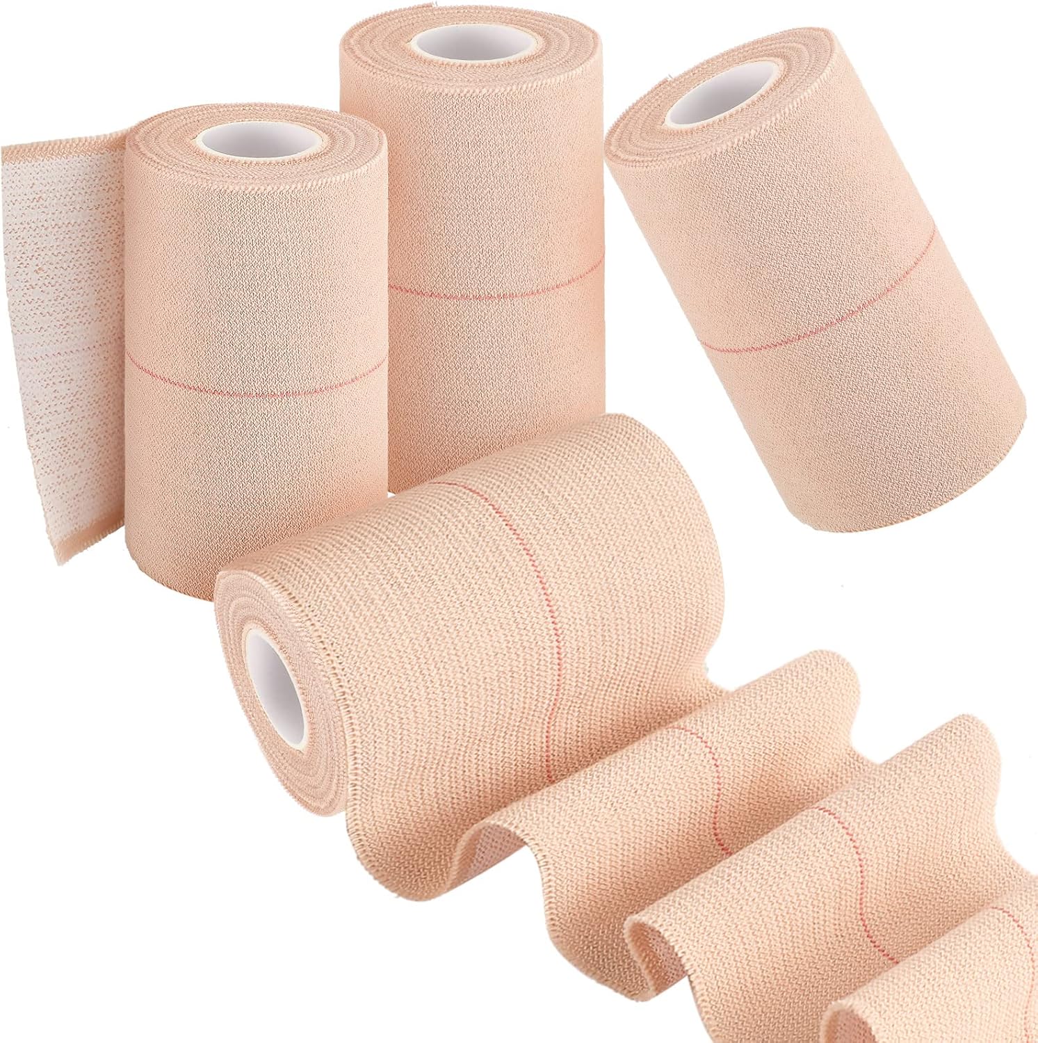 - Elasticity design: these sports bandage are soft cloth, porous construction, red line centered on backcloth, and low-unwind tension, can be applied to where pressure dressings requiring elasticity are needed, helps to maintain constant controlled pressure, comfortably ensures a custom fit around hard to tape areas