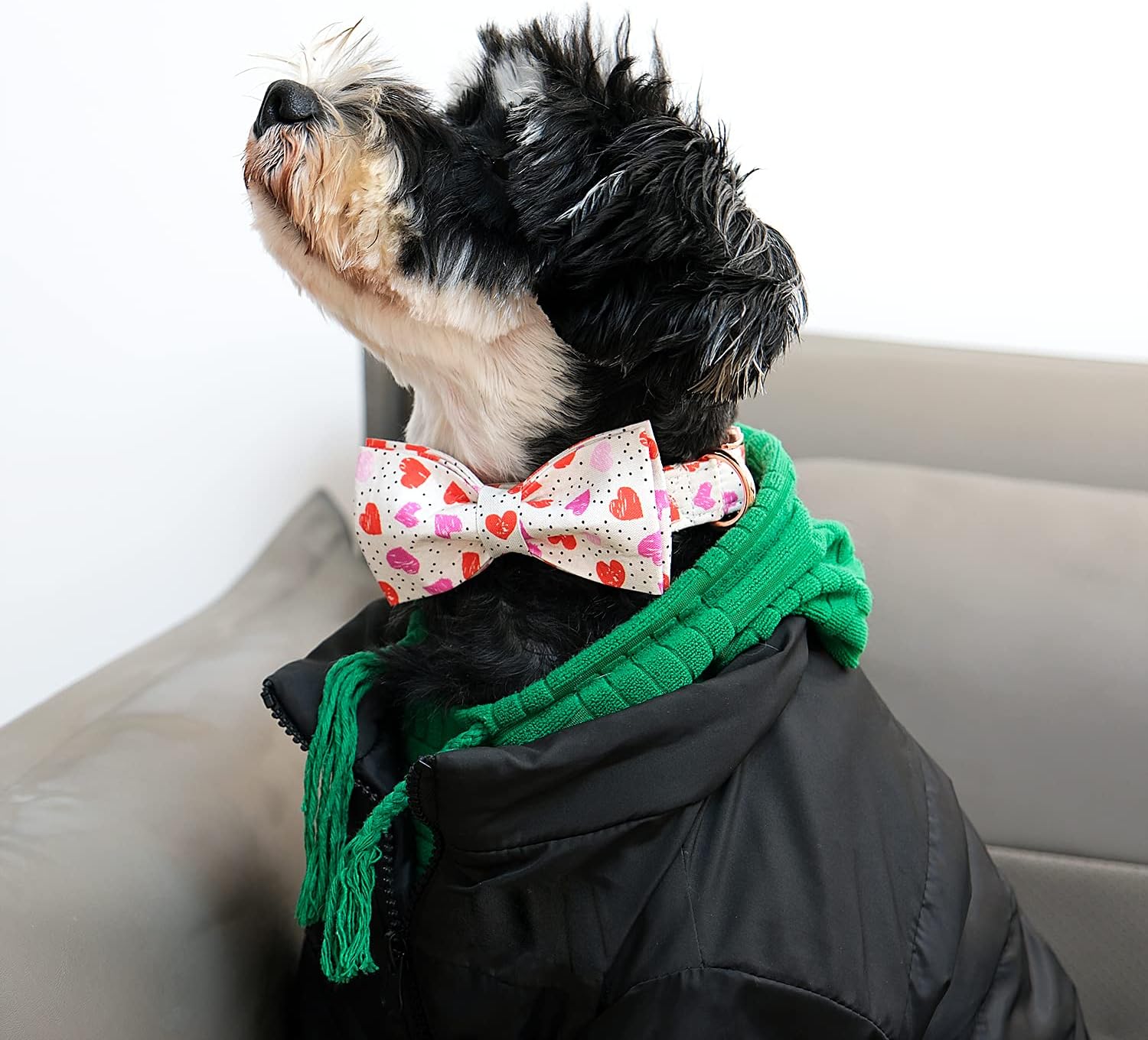 Lionet Paws Valentines Day Dog Collar with Bowtie, Dog Bowtie Collar with Metal Buckle for Dogs, Adjustable Comfortable Dog Collar Girl Boy, S, Neck 10-16 in