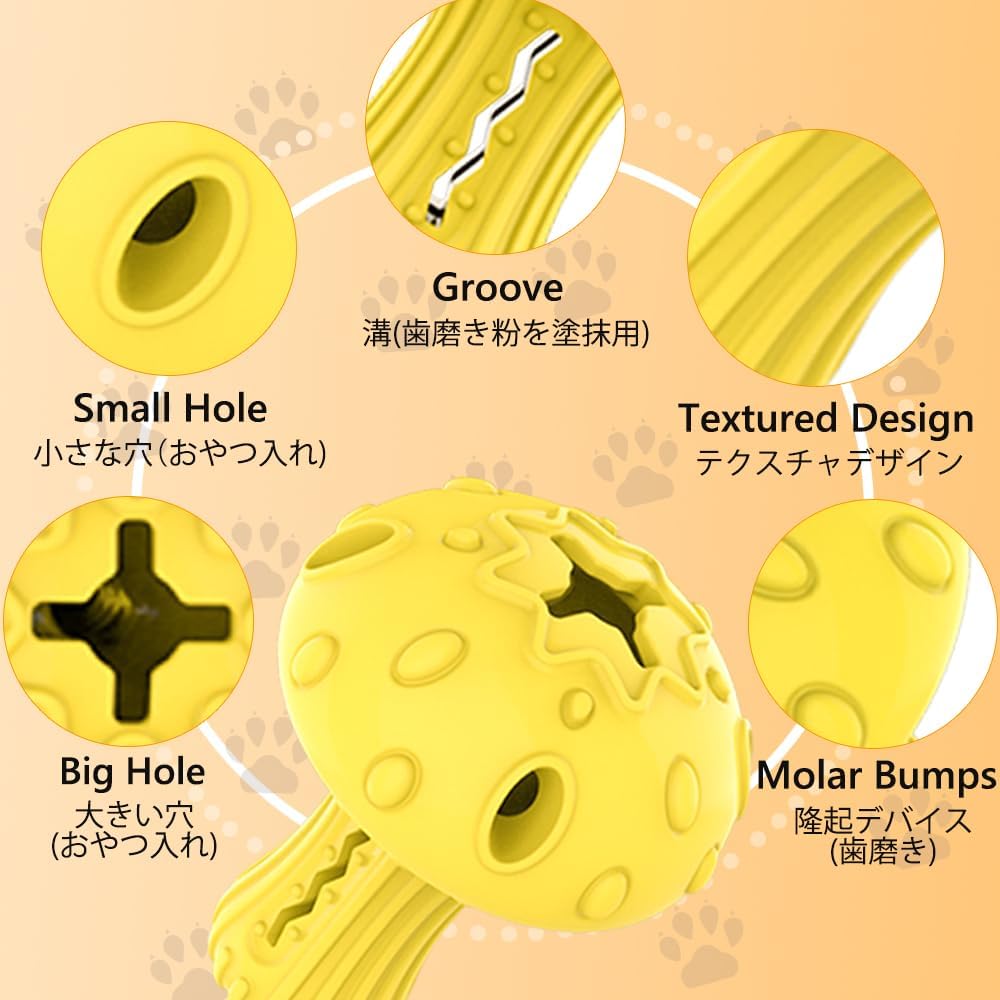 - Teeth Cleaning Toy: There are ridges and bumps on the surface of the mushroom doggy toy and a groove in the stem where you can insert jerky or apply dog toothpaste or peanut butter. It attracts dogsâ interest and helps them clean teeth while teething.