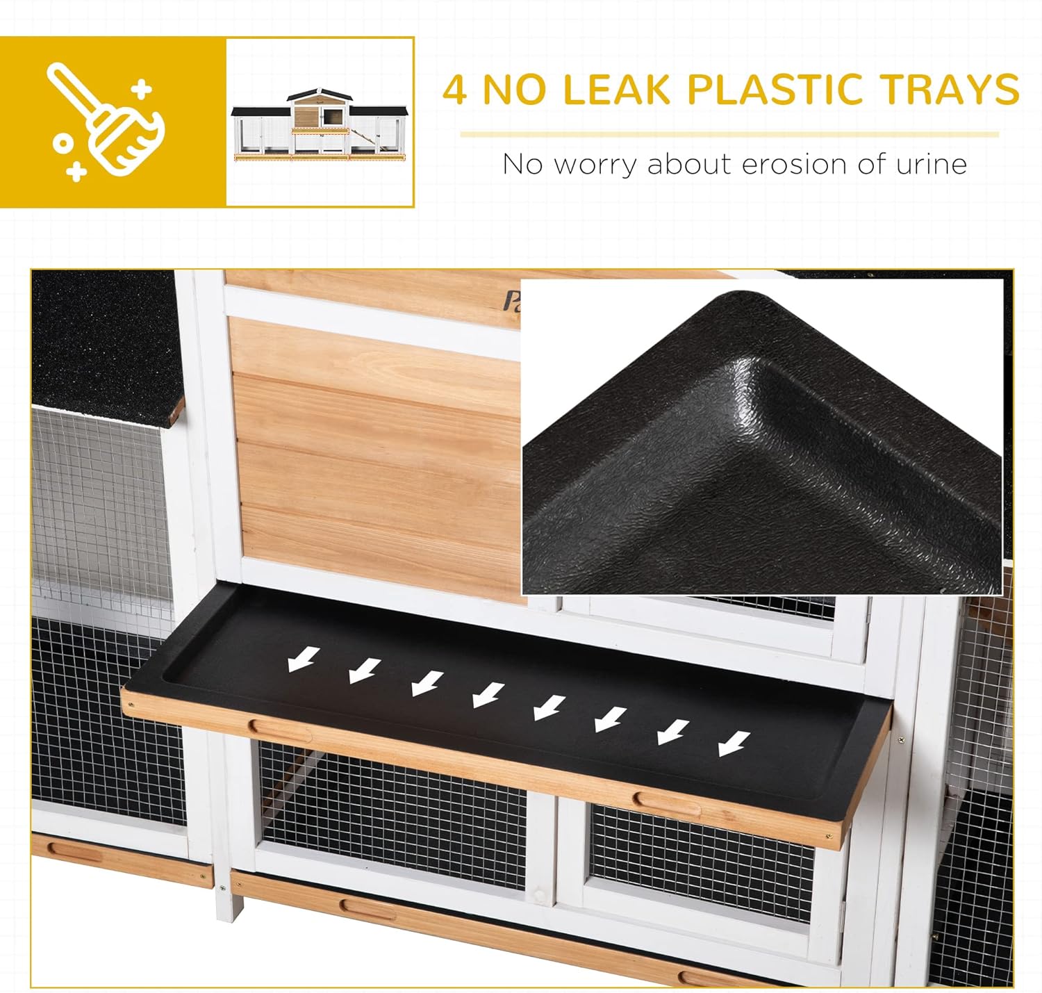 PawHut 90.5" Wooden Rabbit Hutch Bunny Cage Pet Playpen House Enclosure with Double Side Run Boxes, No Leak Tray, Ramp, for Rabbits, Chickens, Ducks, Guinea Pig and Small Animals, White