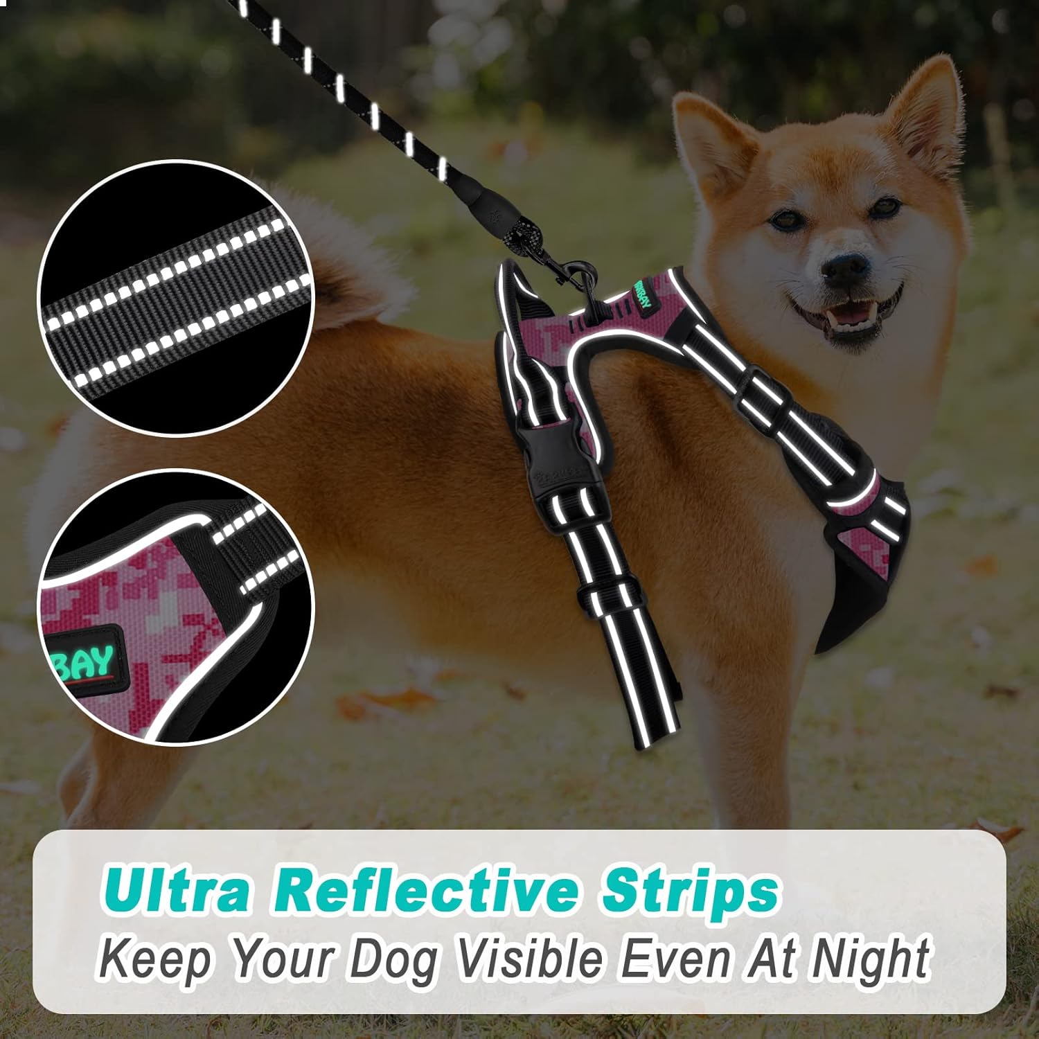 BARKBAY No Pull Dog Harness Large Step in Reflective Dog Harness with Front Clip and Easy Control Handle for Walking Training Running(Pink camo,XL)
