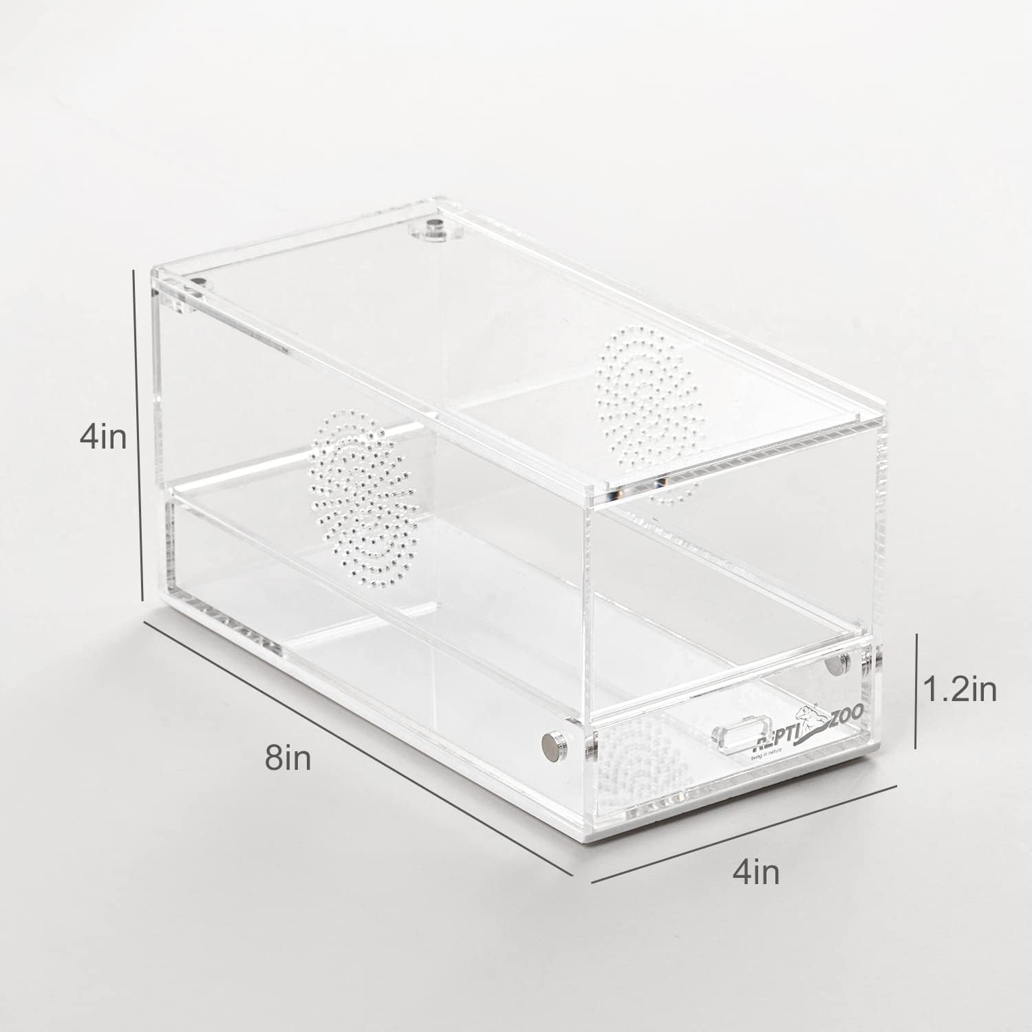 REPTI ZOO Magnetic Acrylic Reptile Terrarium 8" x 4" x 4", Transparent Tarantula Spider Enclosure Micro Breeding Box for Hermit Crab Snail Mantis Frog Insects