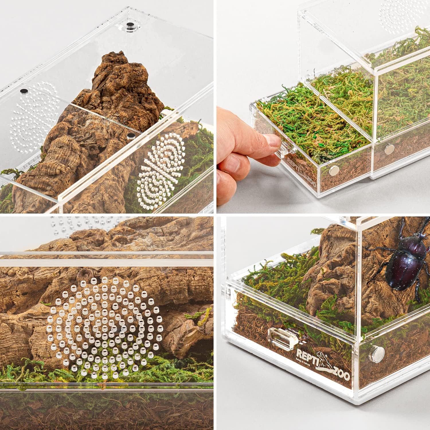 - Easy Access and Maintenance: The REPTI ZOO Acrylic Reptile Terrarium features a magnetic case, allowing for easy access and maintenance. The up-and-down sliding door design is convenient for feeding and cleaning; The door with magnetic snaps easy access and prevents the pet from escaping.