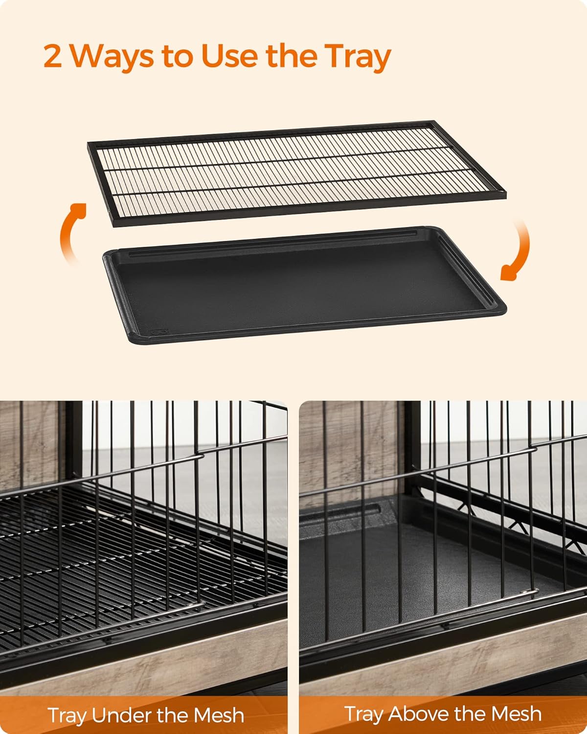- [2 Ways to Use the Tray] Put the tray under the bottom mesh to catch crumbs, fur, and dirt, keeping your dog's place clean without dirtying your floor, or place the tray above the mesh to offer your dog a flat, comfortable surfaceâit's up to you