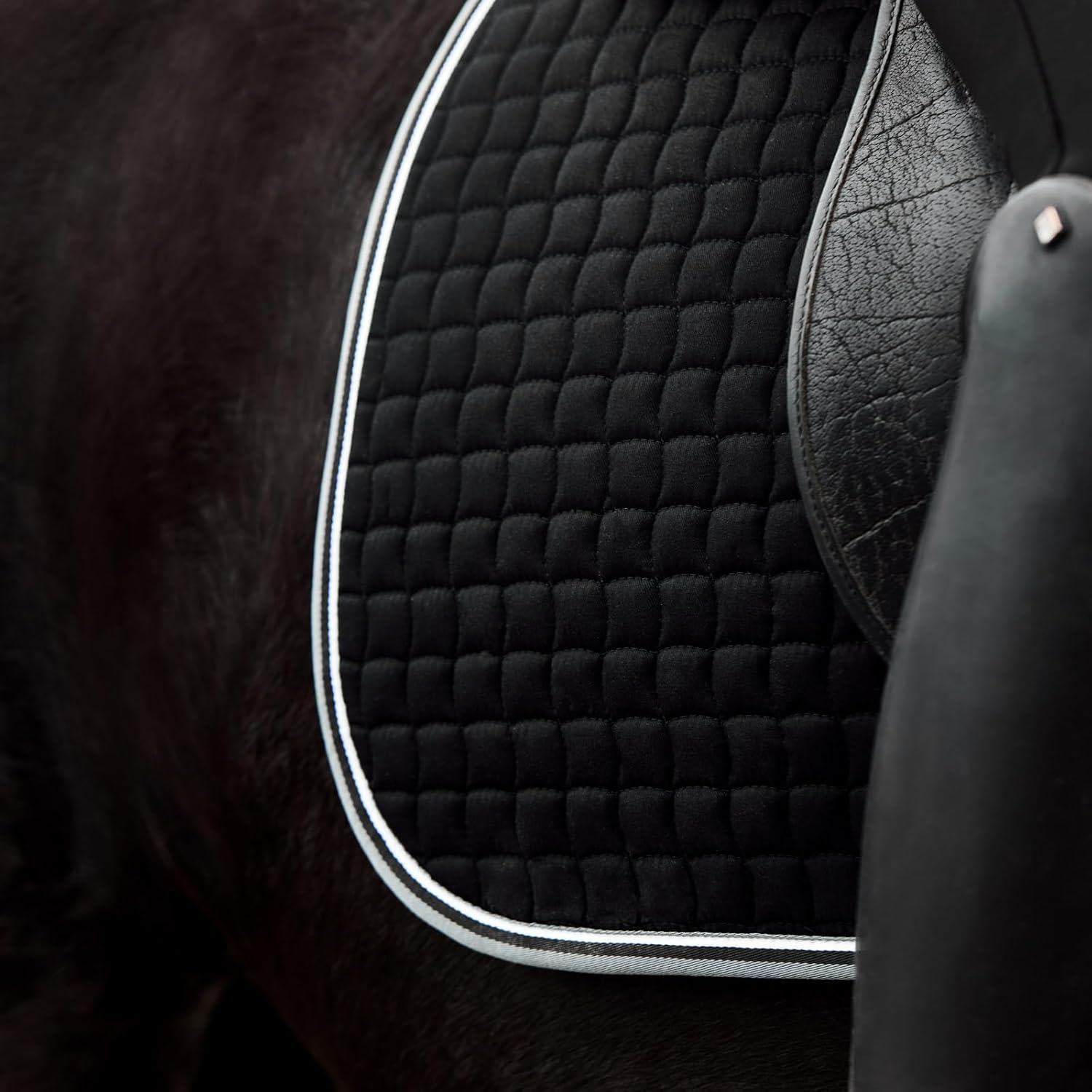 - ✅ Dressage Saddle Pad - Square saddle pad in a sporty shape fits standard-sized dressage saddles.