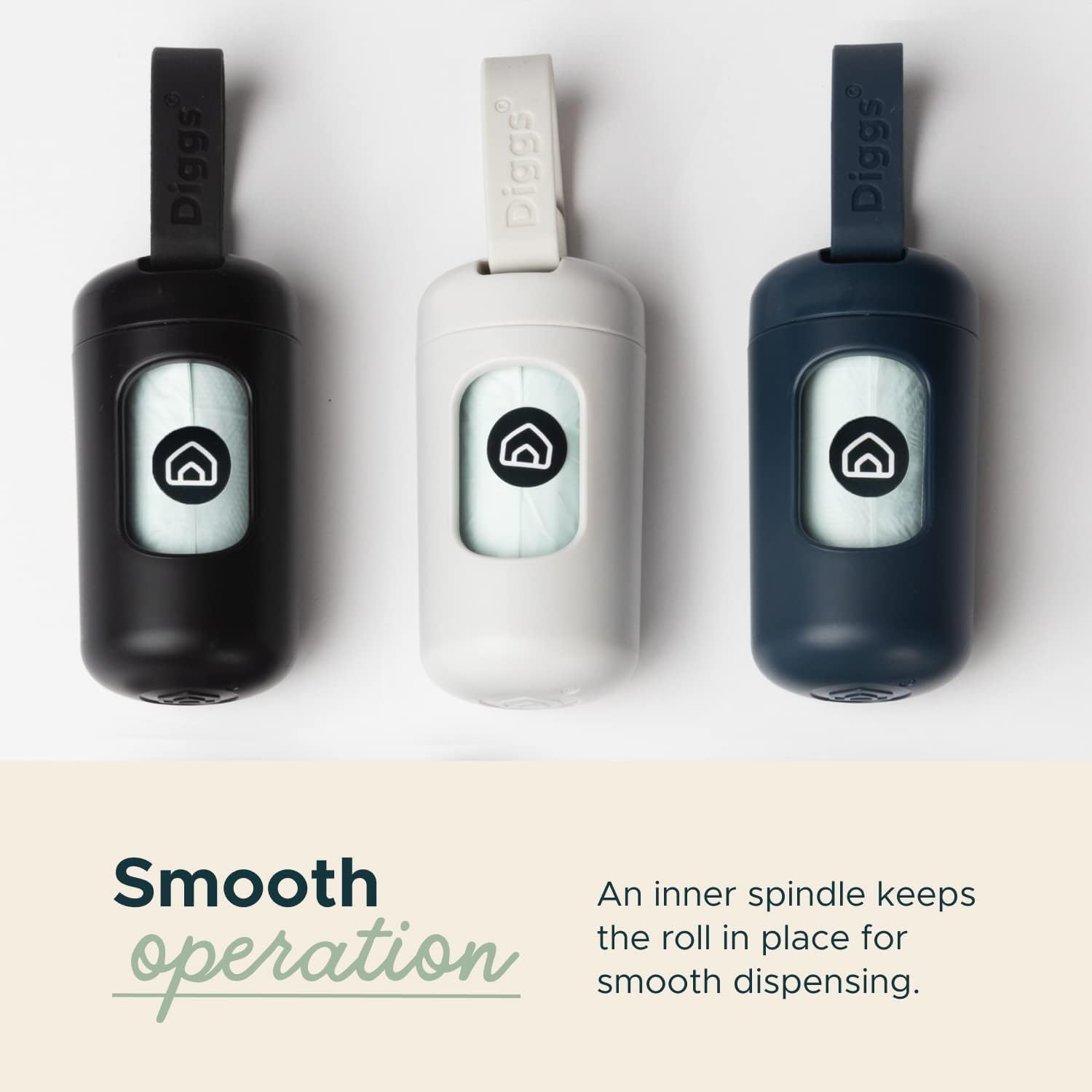 DIGGS Dog Poop Bag Dispenser for Leash - Premium Dog Waste Bag Holder with Easy One-Hand Dispensing (Ash)