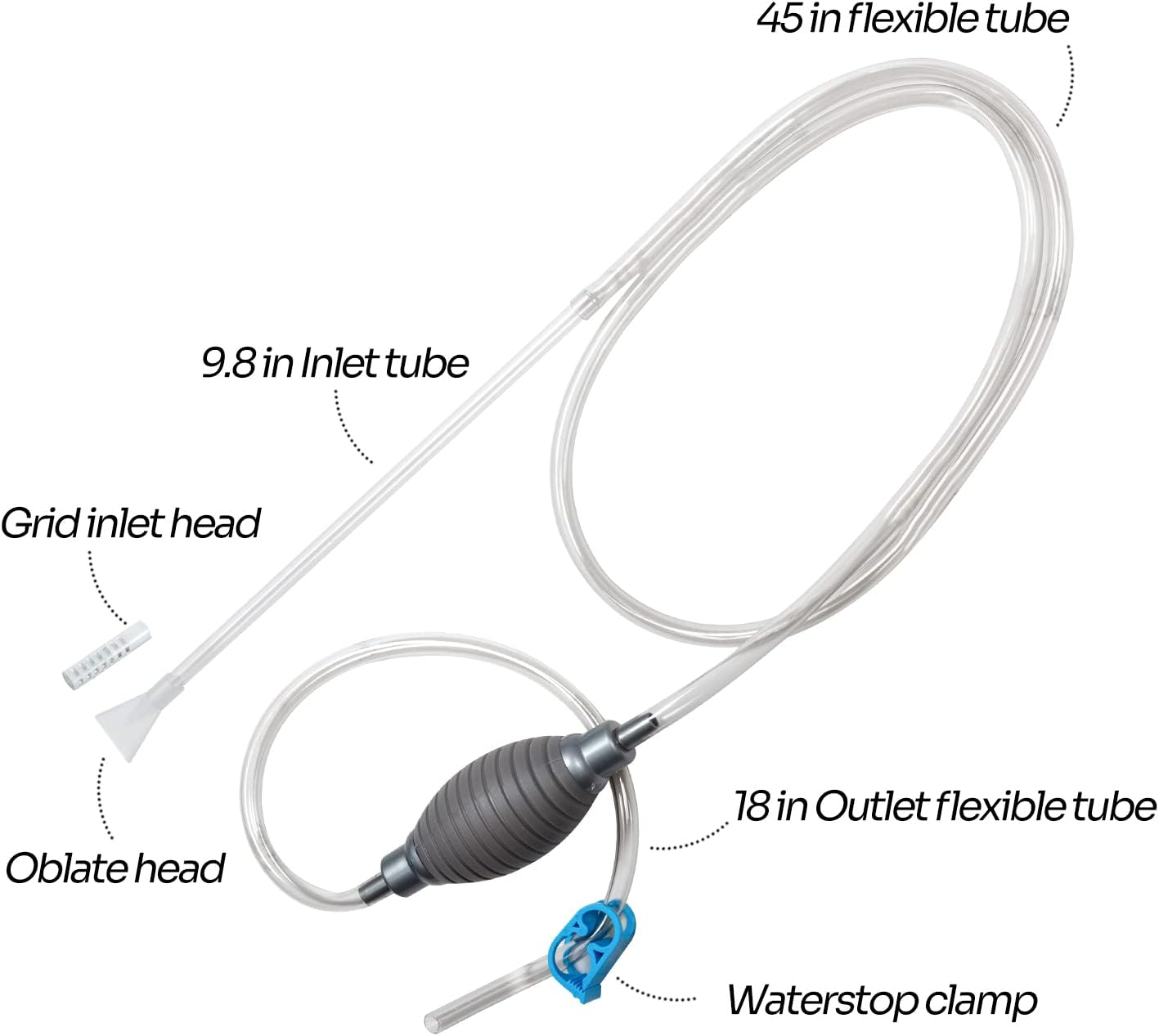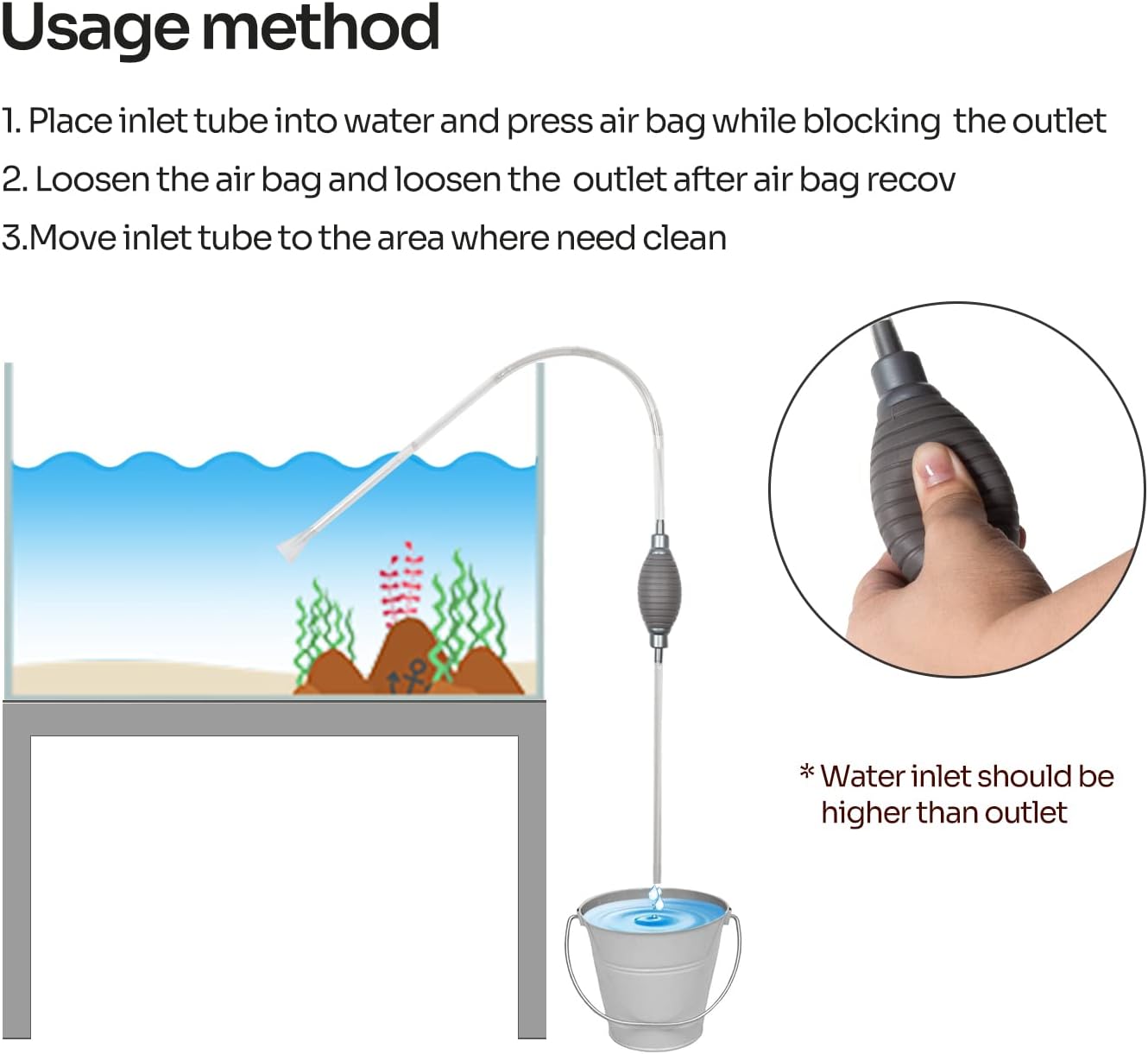- ă2 IN 1 Multifunctional Siphon Gravel Cleaner Setă: It can work as water changer or tank cleaner as it has grid inlet head and oblate head, you can install the head as you need. Whether you have a small or extra-large tank, this flexible terrarium cleaning kit works well with all types of terrarium, the tube is long enough(79inch) and flexible, convenient to use.