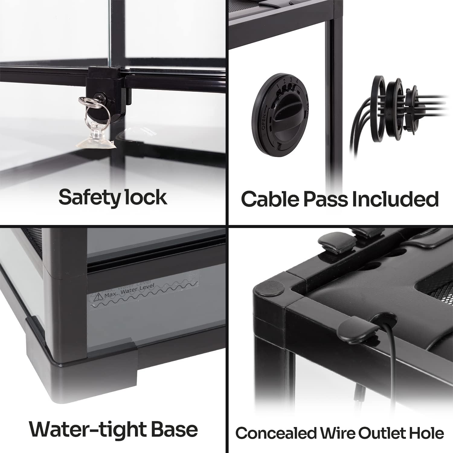 - ăFront Opening Dooră: The front door can open separately and it's easy for you to feed, clean or add decoration. And the terrariums feature anti-escaping safety lock to prevent escape.