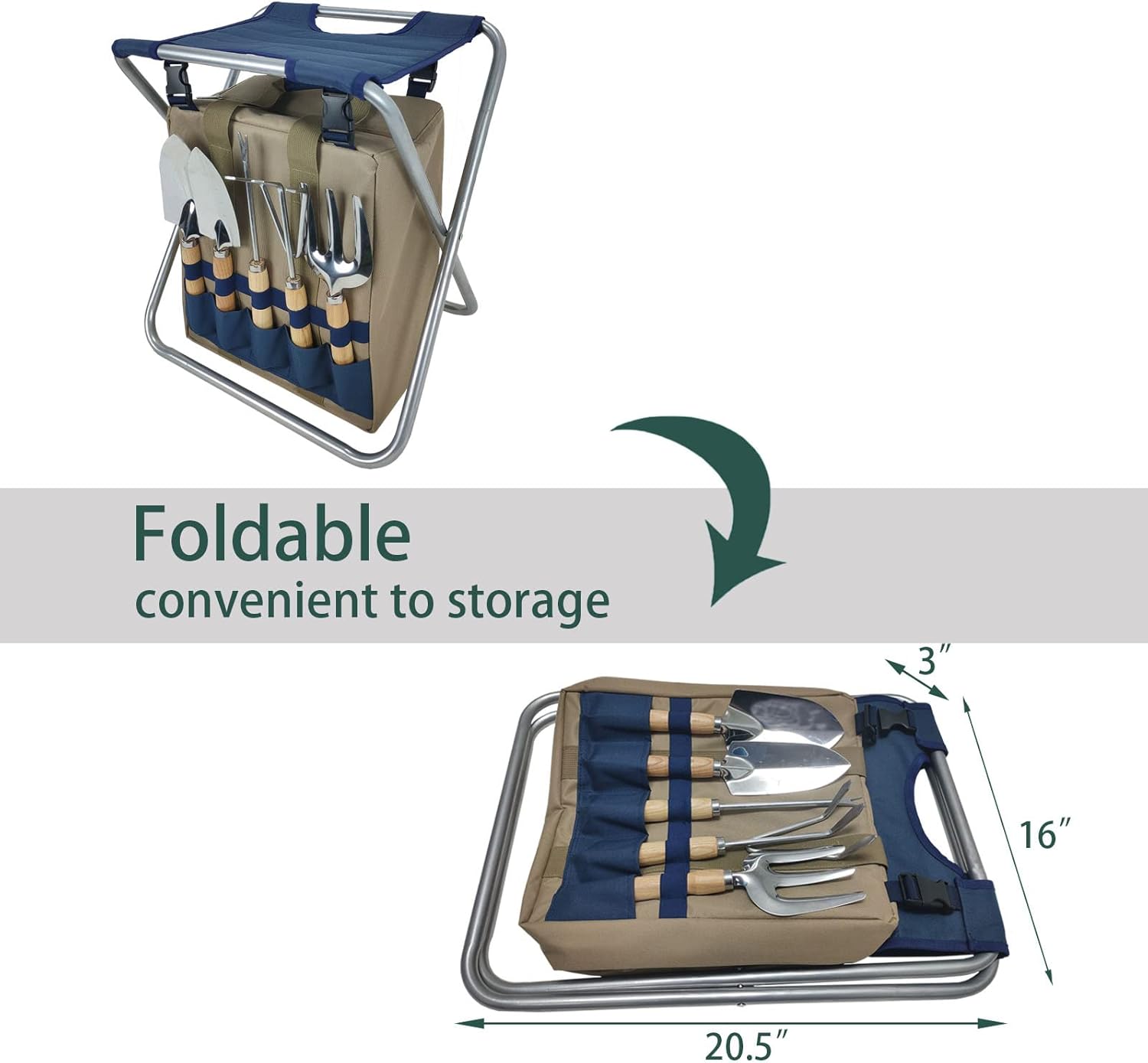 Garden Folding Gardener Stool with Gardening Tools Insulation Garden Bags Plus 5 Garden Tools and Gardening Kneeler Ideal Gift for Mother's Day/Father's Day (Navy Blue)