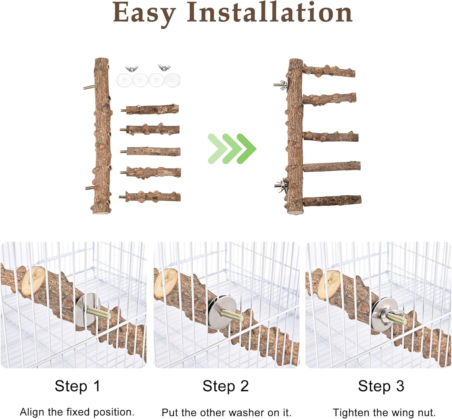 - ăEasy Installationă: The bird perches are suitable for all bird cages. Each bird perch stand toy is equipped with built-in bolt and wing nut, super easy to install and dismantle. Once intalled it will not fall off from the cage, safe for birds to rest or play on.