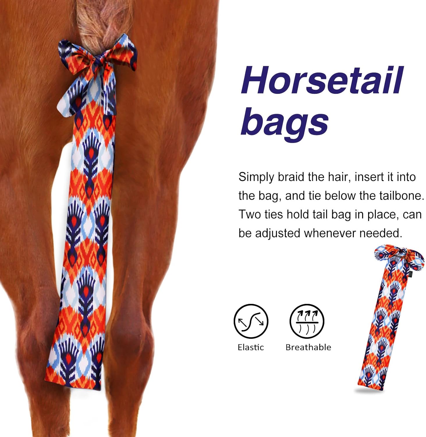 - Unique & Dynamic Pattern Range: Crafted from a smooth stretch fabric and uniquely designed with a range of vibrant patterns, this tail bag not only wears comfortably, also allows you to better tailor your horseâs overall look