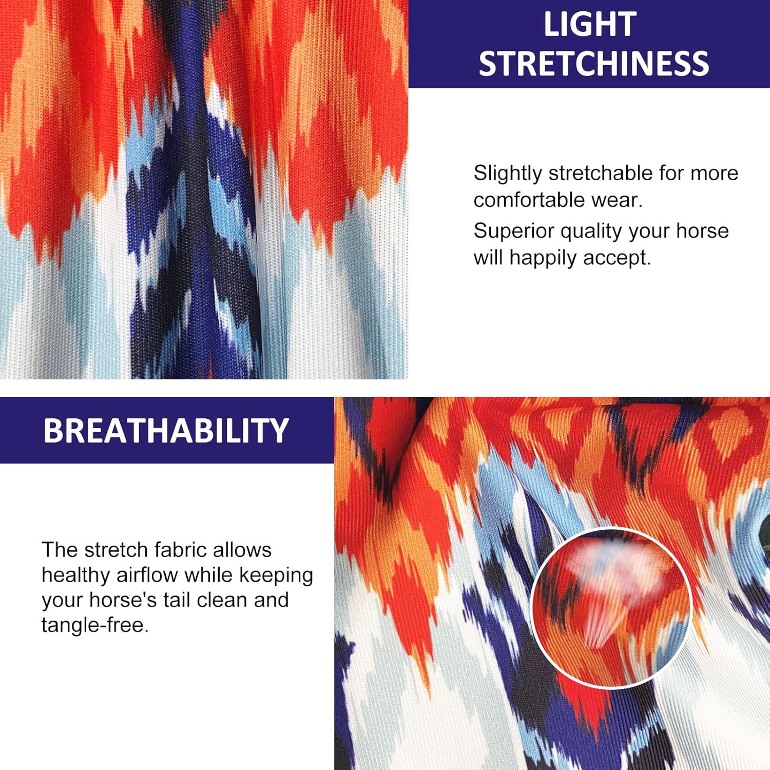 - Breathable: High level of breathability allows healthy airflow while keeping your horseâs tail clean, tangle-free, and lasts in all weather conditions.