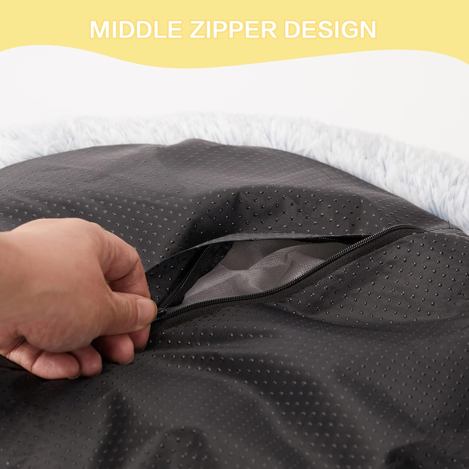 - [Easy Care] This plush dog bed is equiped with a middle zipper on the bottom. The central cushion is removable for easy cleaning. Tumble dry at low temperature after washing. Do not bleach. Please shake and pat the fuzzy dog bed to make completely fluffy before use.