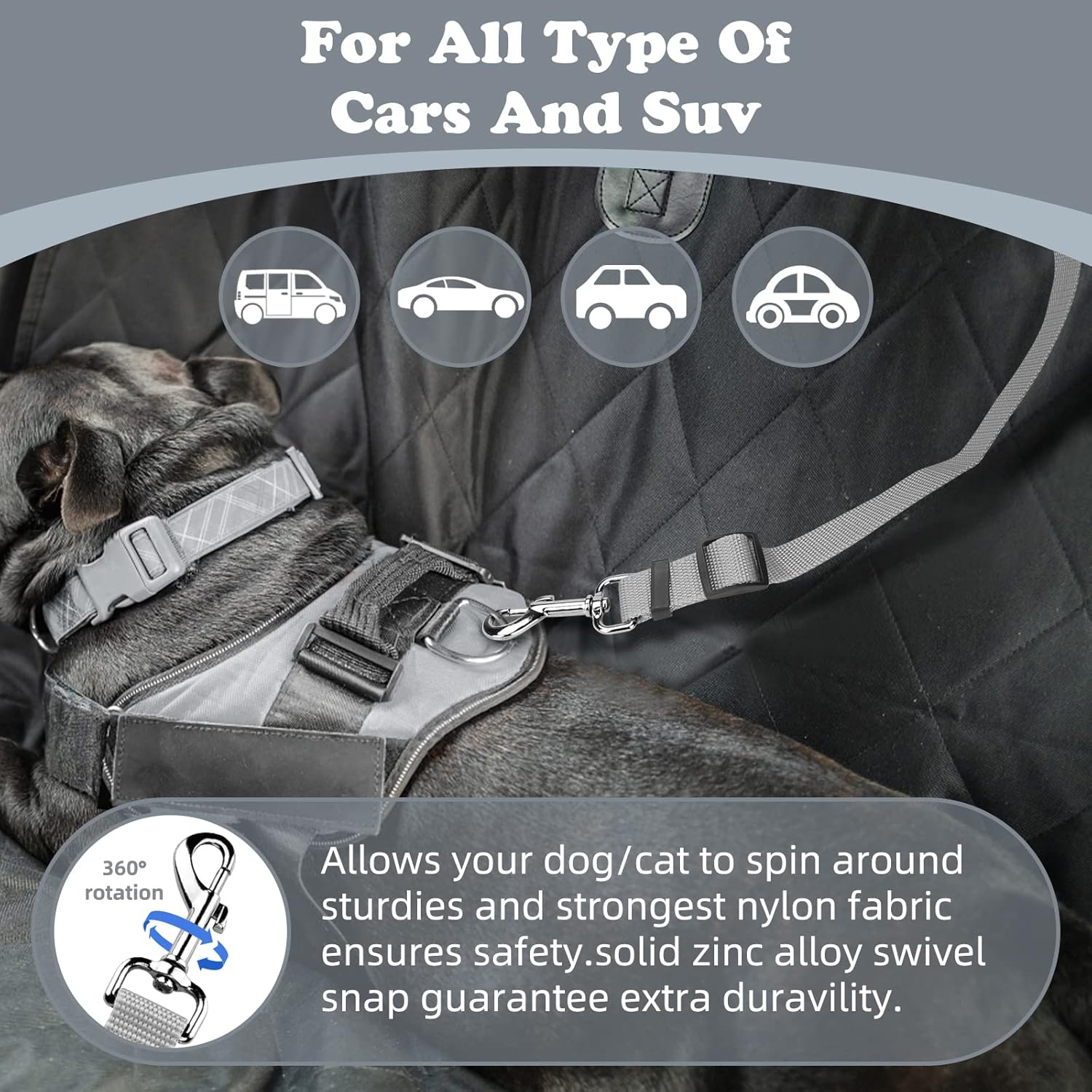 - HIGH QUALITY: Made of high quality nylon fabric to ensure safety, features the solid zinc alloy swivel snap and quality buckles, the pet car seat belt ensures the most safest traveling for your pet, and provides a most relaxing driving experience for you.