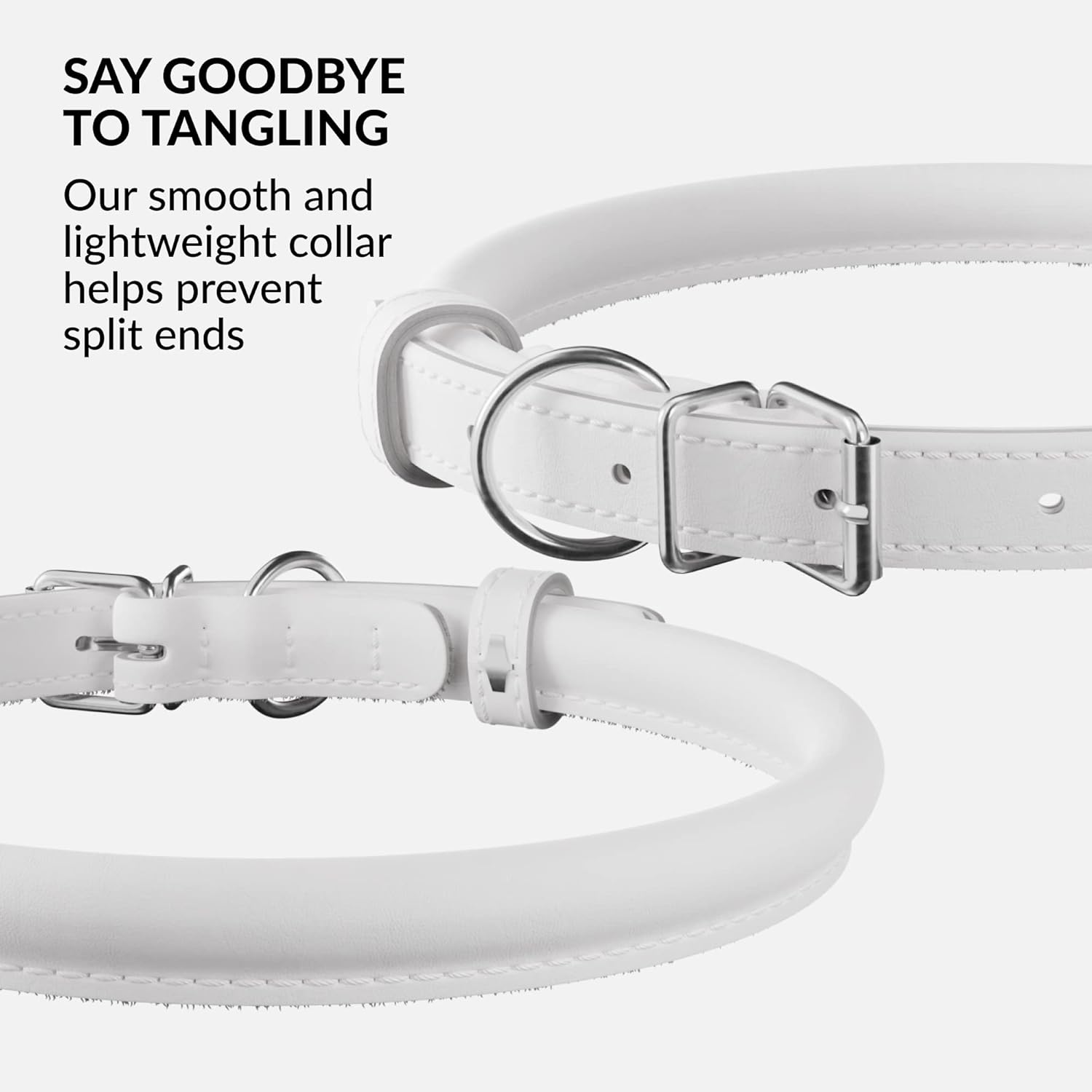 CollarDirect Rolled Leather Dog Collar, Soft Padded Round Puppy Collar, Handmade Genuine Leather Collar Dog Small Large Cat Collars 13 Colors (6-7 Inch, White Smooth)