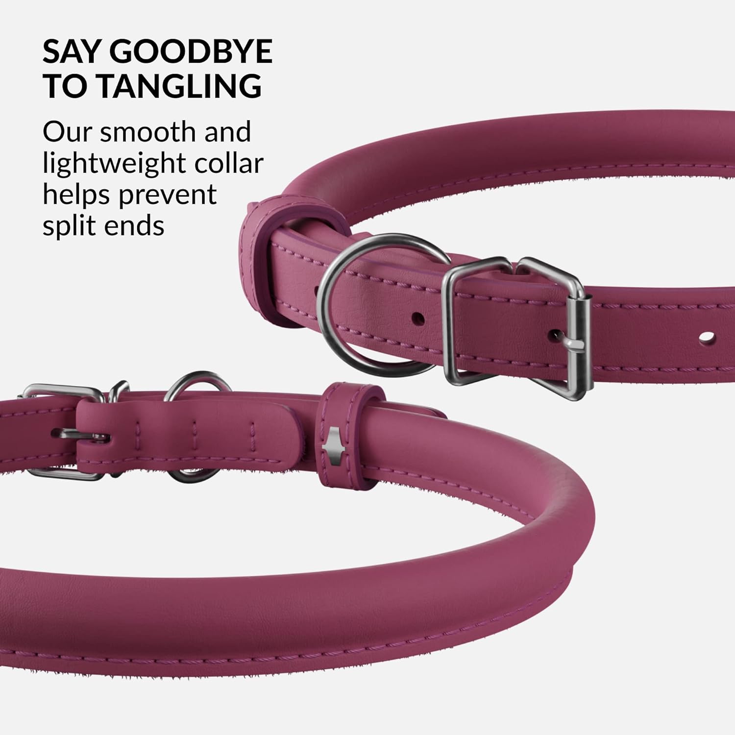 - SOFT ON LONG HAIR: Our lightweight, rolled thin dog collar is made from 100% genuine soft leather. A rolled leather dog collar helps with matting and tangling of all breeds, and leather dog collars are the standard groomer recommendation for breeds with long hair.