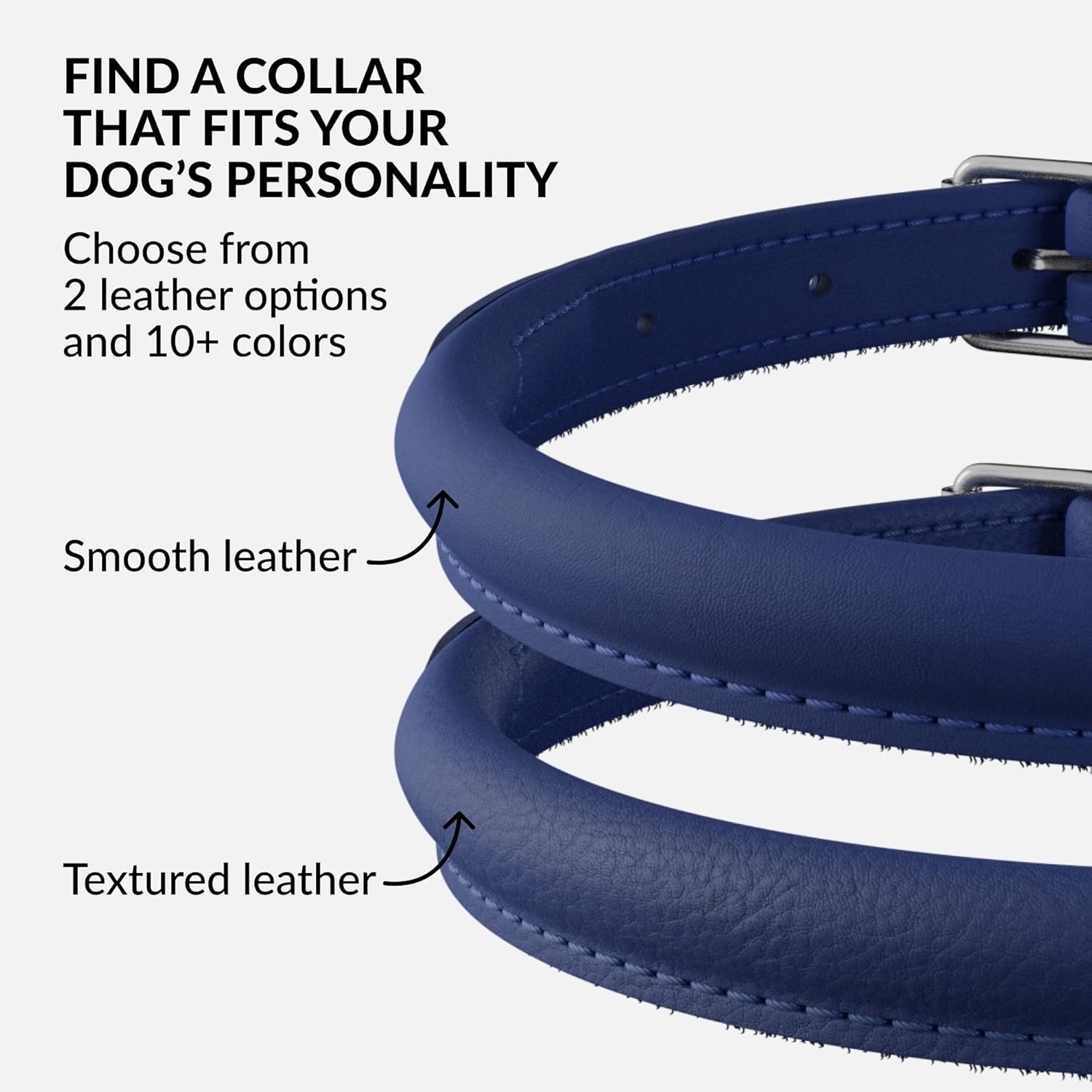 CollarDirect Rolled Leather Dog Collar, Soft Padded Round Puppy Collar, Handmade Genuine Leather Collar Dog Small Large Cat Collars 13 Colors (8-11 Inch, Deep Blue Smooth)