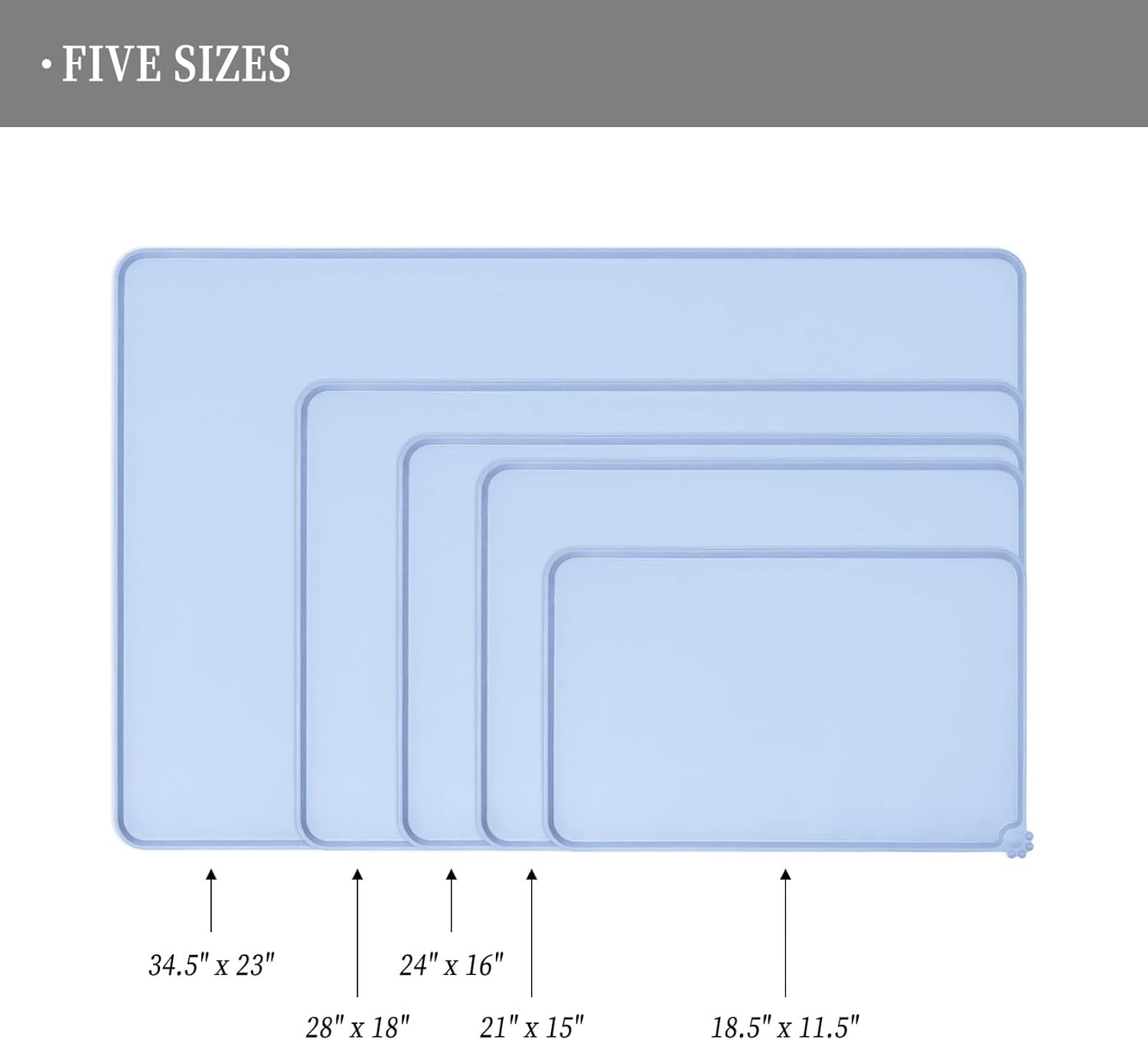 • Various sizes available: our pet mats come in 5 different sizes - 18.5" x 11.5", 22" x 14", 24" x 16", 28" x 18", and 32" x 24". Suitable for all kinds of pets, from puppies to large pets, choose the perfect size for your furry friends and avoid messy spills at mealtime