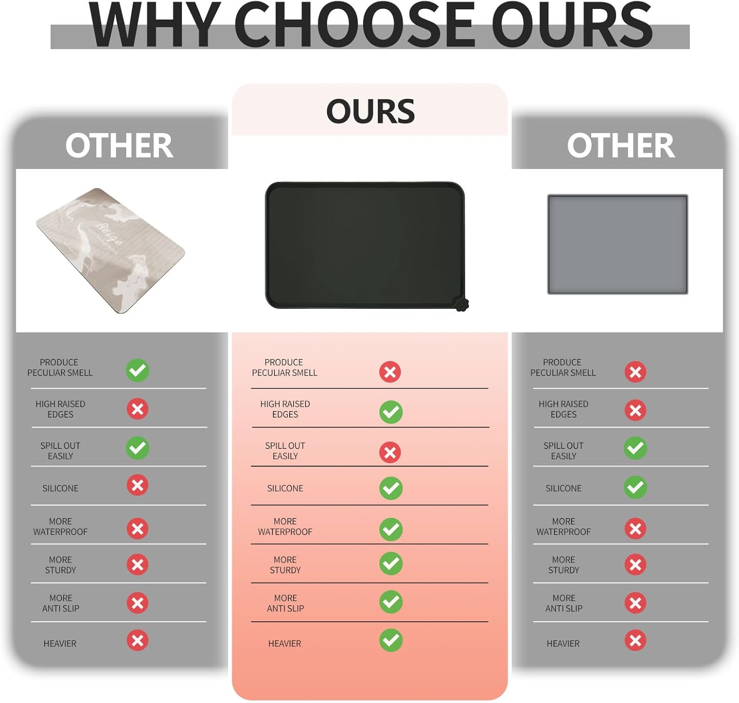 • High-raised edges: say goodbye to messy floors with our mats' high-raised edges that protect your floors from spills and splashes. Keep food and water contained and your floors mess-free