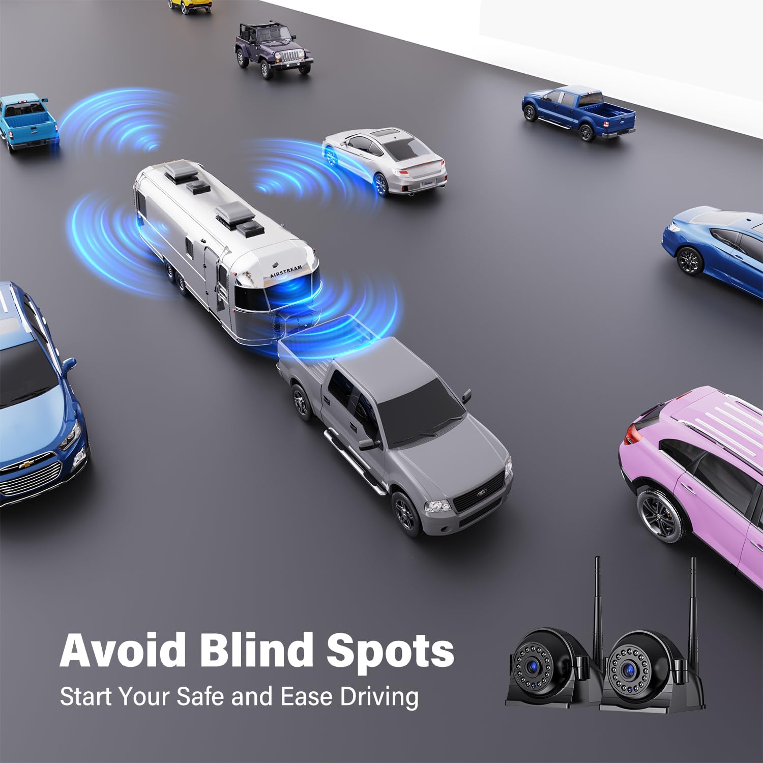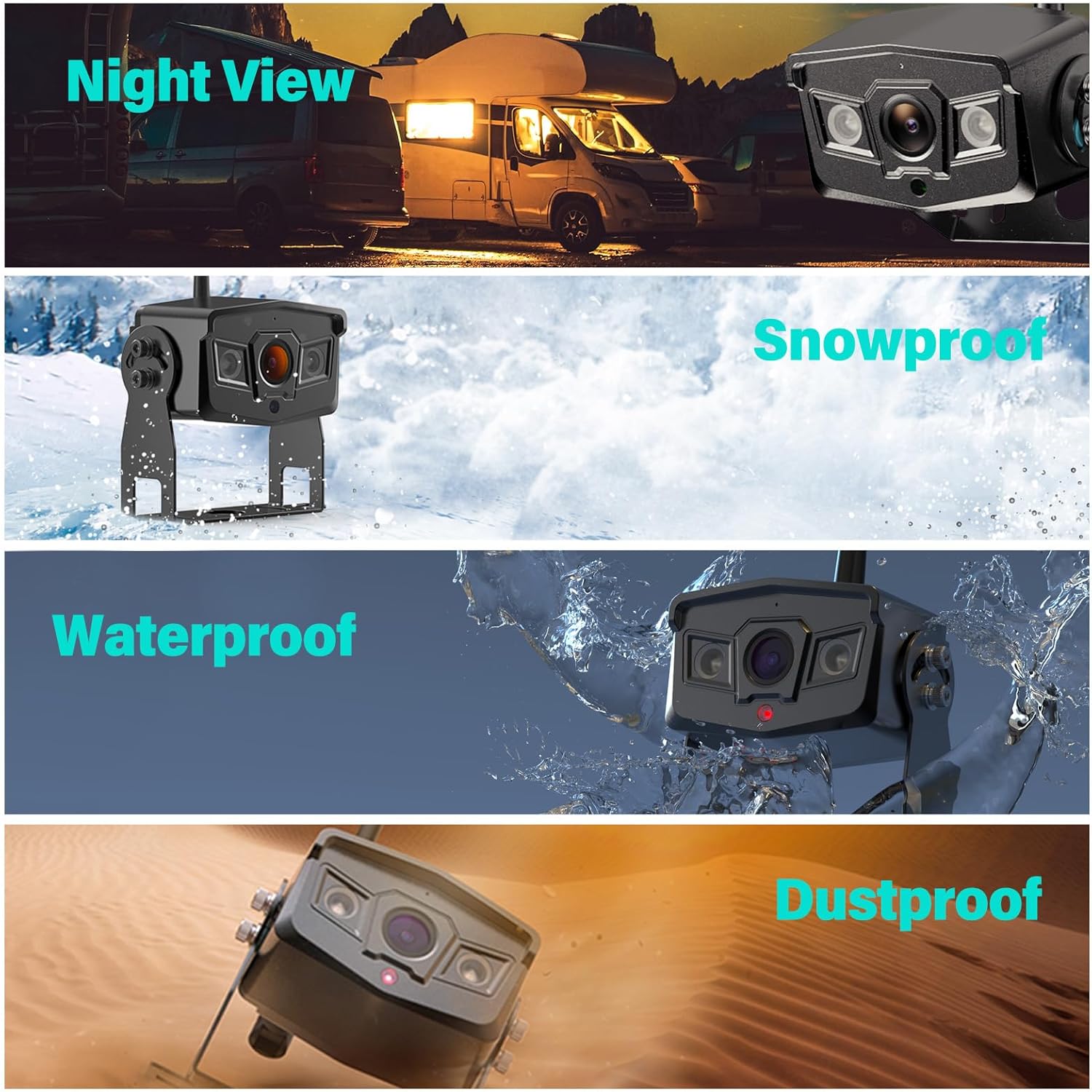 - 🚚🚚 Wireless Backup Camera Kit - This wireless backup camera system includes a 9 inch monitor and 2 rear view/front view backup camera. Adopts digital wireless transmission technology, presents stable and high-definition images for reversing or monitoring. It could delivers a stable image without any interference from other wireless signals.