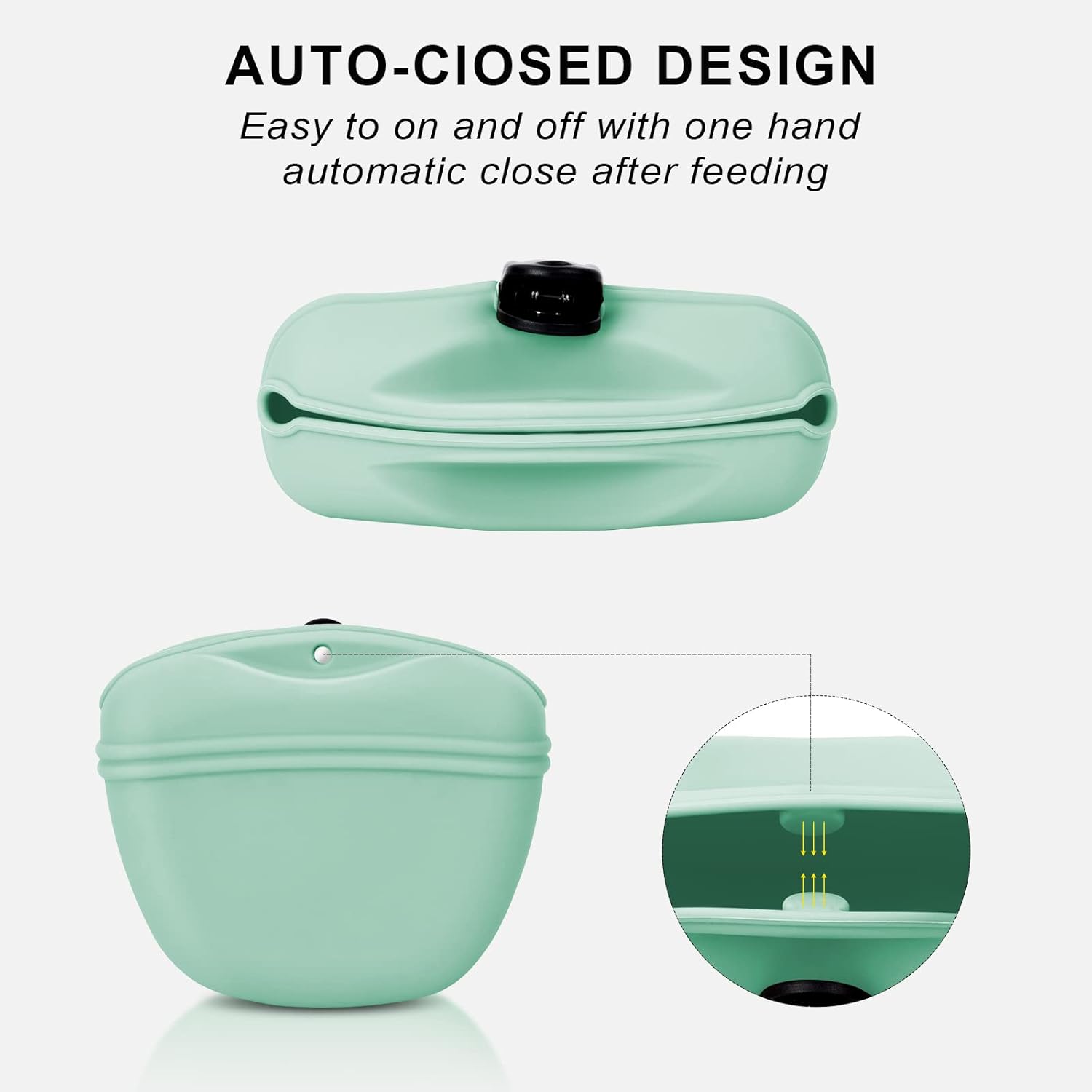 - 🐕Silicone Dog Treat Pouch🐕 - The silicone dog treat pouch is made of food grade silicone,it can contact dry and wet food directly,safe and healthy. It’s easy to on and off with one hand, automatic close after feeding.With upgrated clip,It is easy to carry,not easy to fall off.Dish washer safe and easy to clean,The large opening design and soft silicone material make the pet pouch easy to reverse to clean the inner easily and thoroughly.
