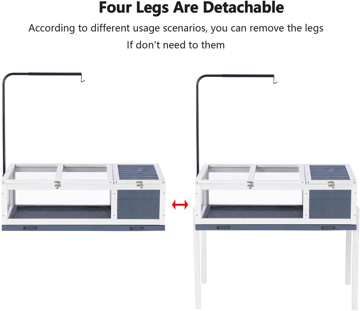 - đ˘Multifunctional Tortoise House: This cage is not only a tortoise cage. The bearded dragon could be a good habitat for other small reptiles, such as guinea, pigs, hamster, hedgehogs, rabbits, chicks, lizards, geckos, tortoise and other small animals etc. Detachable legs can be removed according to your needs, you can also put the cage directly on the table.