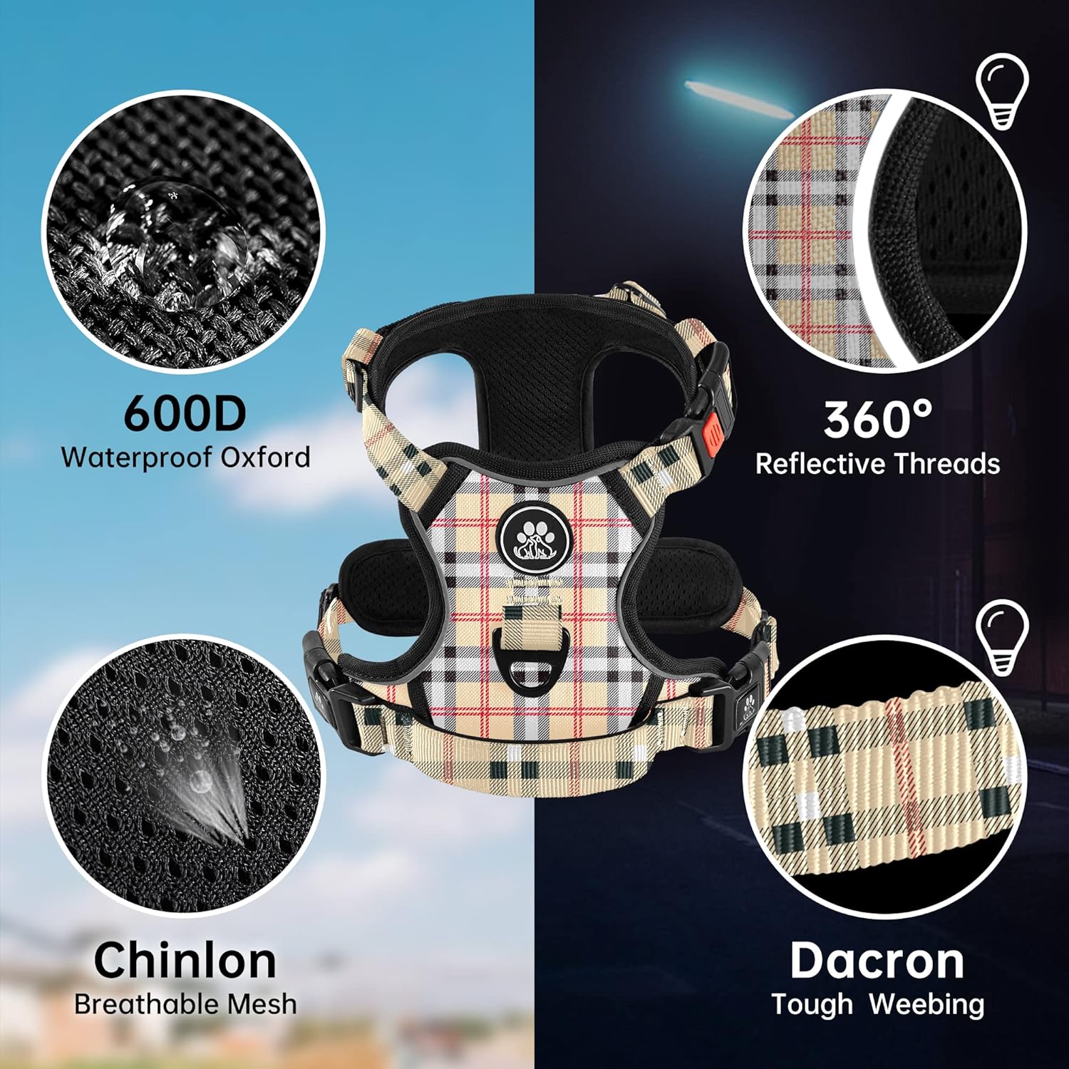 NESTROAD No Pull Dog Harness with Leash, Reflective No Choke Pet Vest Harness,Adjustable Soft Padded Dog Harness with Easy Control Handle for Medium Dogs(Checkered Beige,Medium)