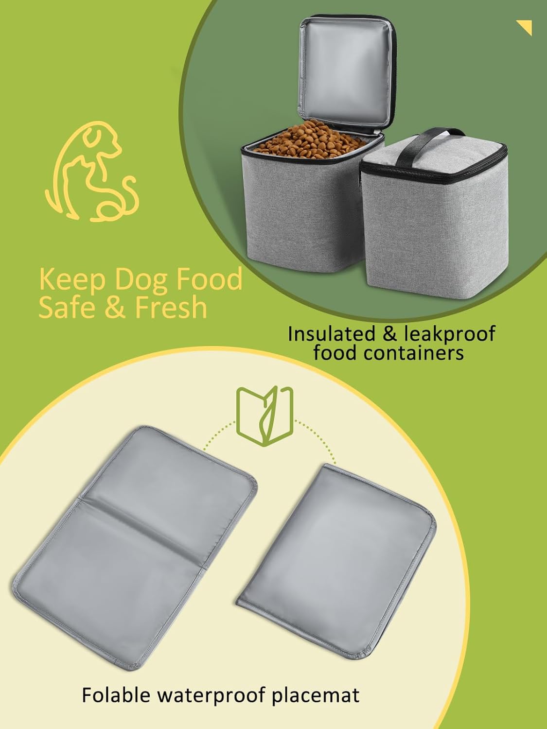 - Keep Dog Food Fresh: Two large dog food containers can hold up to a weekâs worth of food depending on the dog. And the food carriers are fully insulated and leak-proof, keeping your poochâs food/treats fresh and safe no matter where you go, on a hillside or the beach.