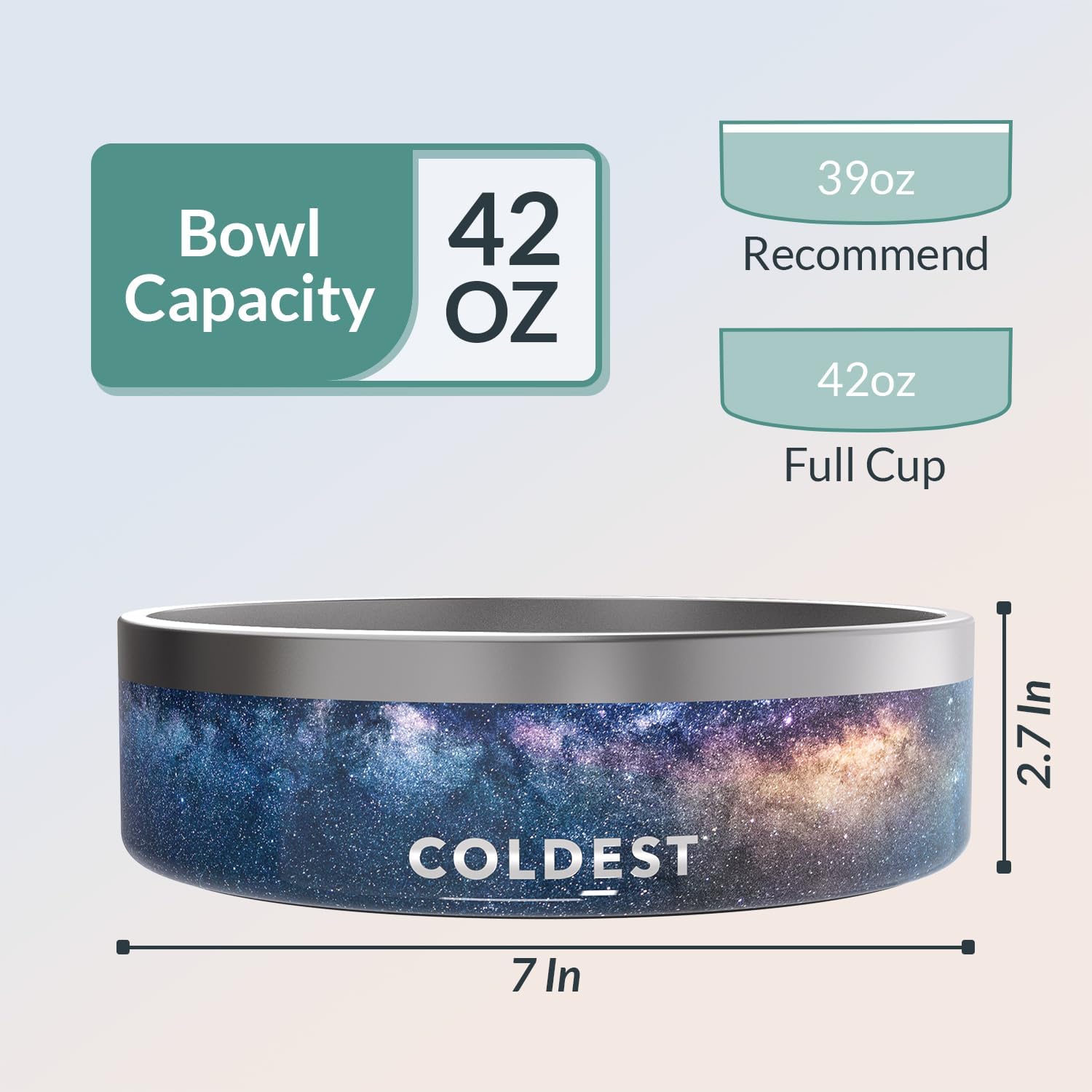 Coldest Dog Bowl - Anti Rust Metal, Non Slip, 3 Layers Insulated Stainless Steel Dog Bowls - Spill Proof & Heavy Duty - Water Bowl for Dogs, Cats & Pets, Dish Washer Safe (42 oz, Into The Beyond)