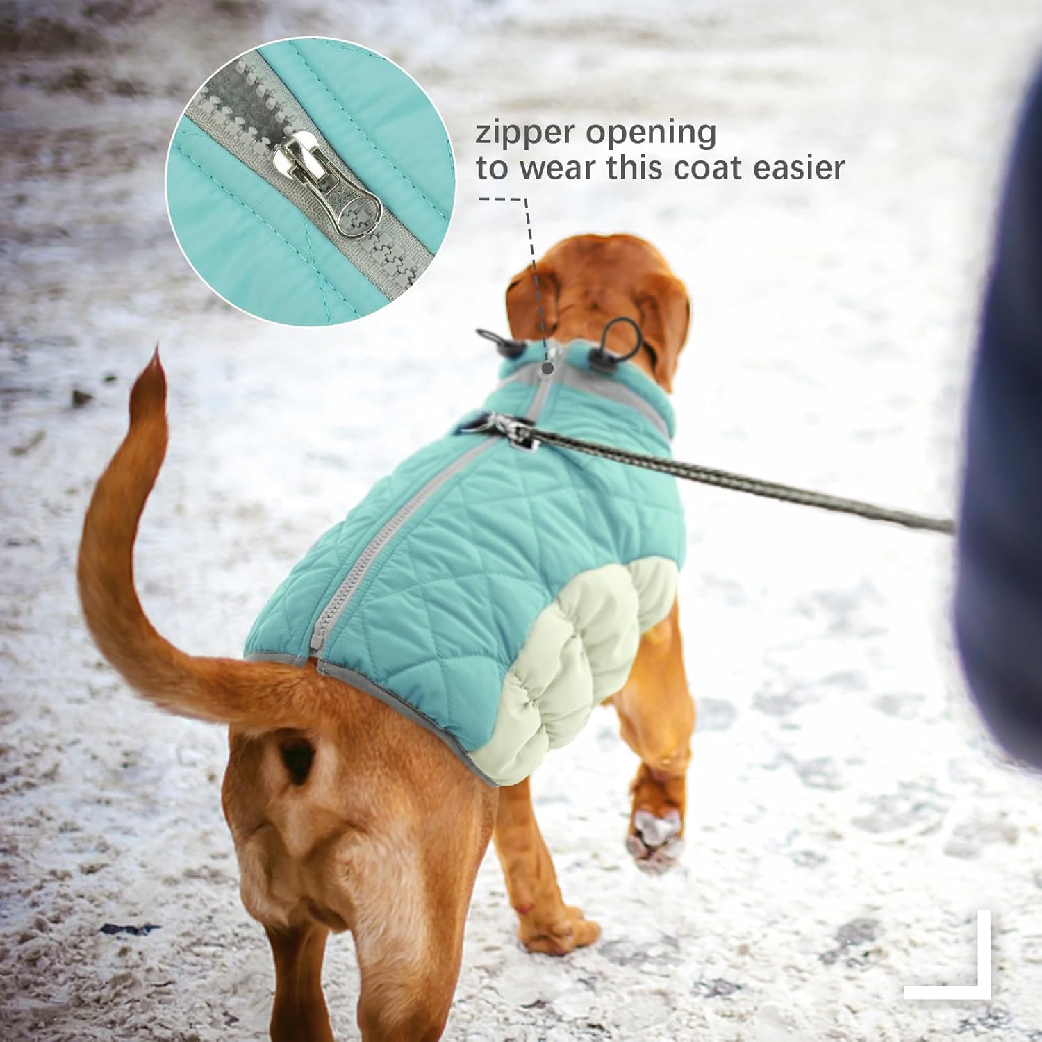 FUAMEY Dog Coat for Small Dogs,Waterproof Dog Winter Jacket with Harness Built in Puppy Cold Weather Coats Reflective Pet Vest with Zipper Warm Fleece Dogs Snowsuit Windproof Mint Green S