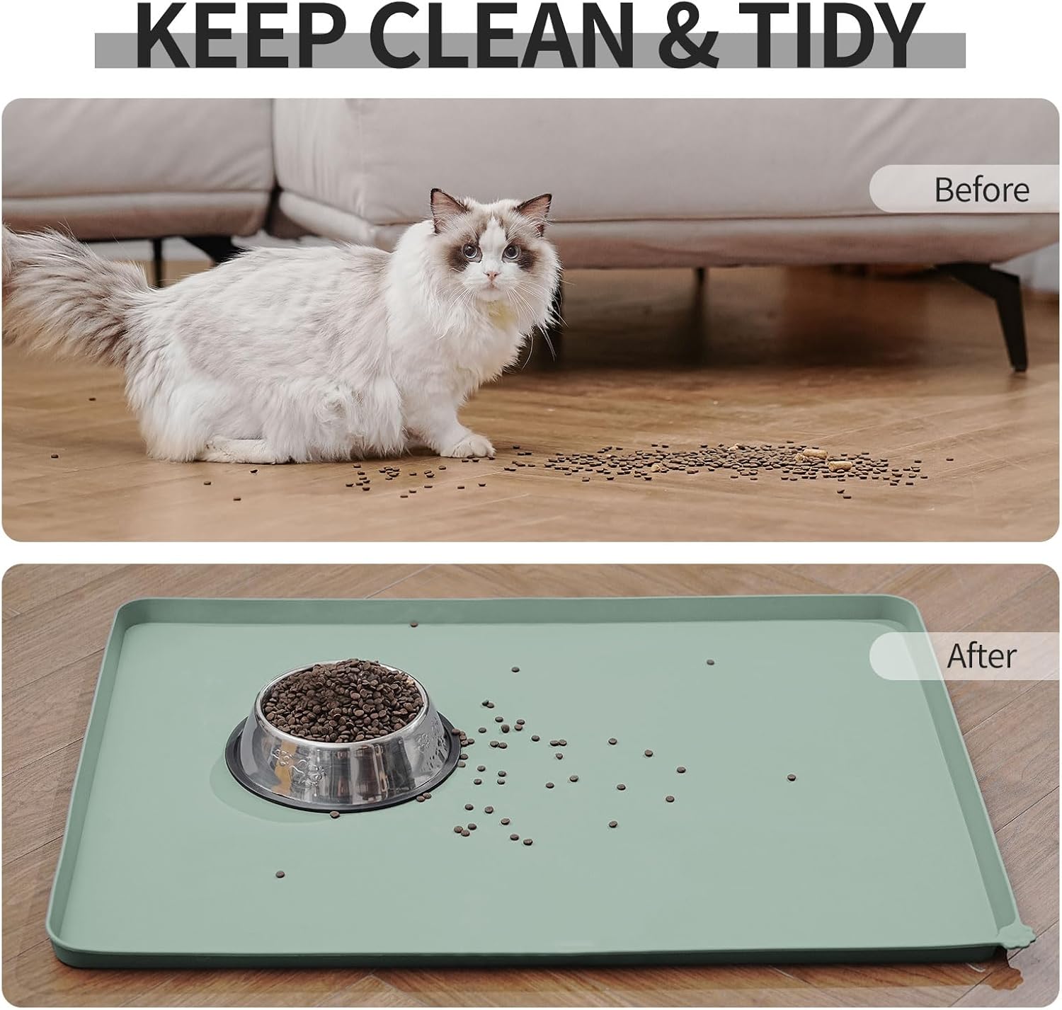 Waterproof Pet Feeding Mat with High Raised Edges, Heavier and Thicker Placemats for Cat Dog Water Bowl with BPA Free, Dogs Cats Food Mats for Messy Drinkers to Prevent Spill and Protect Floors