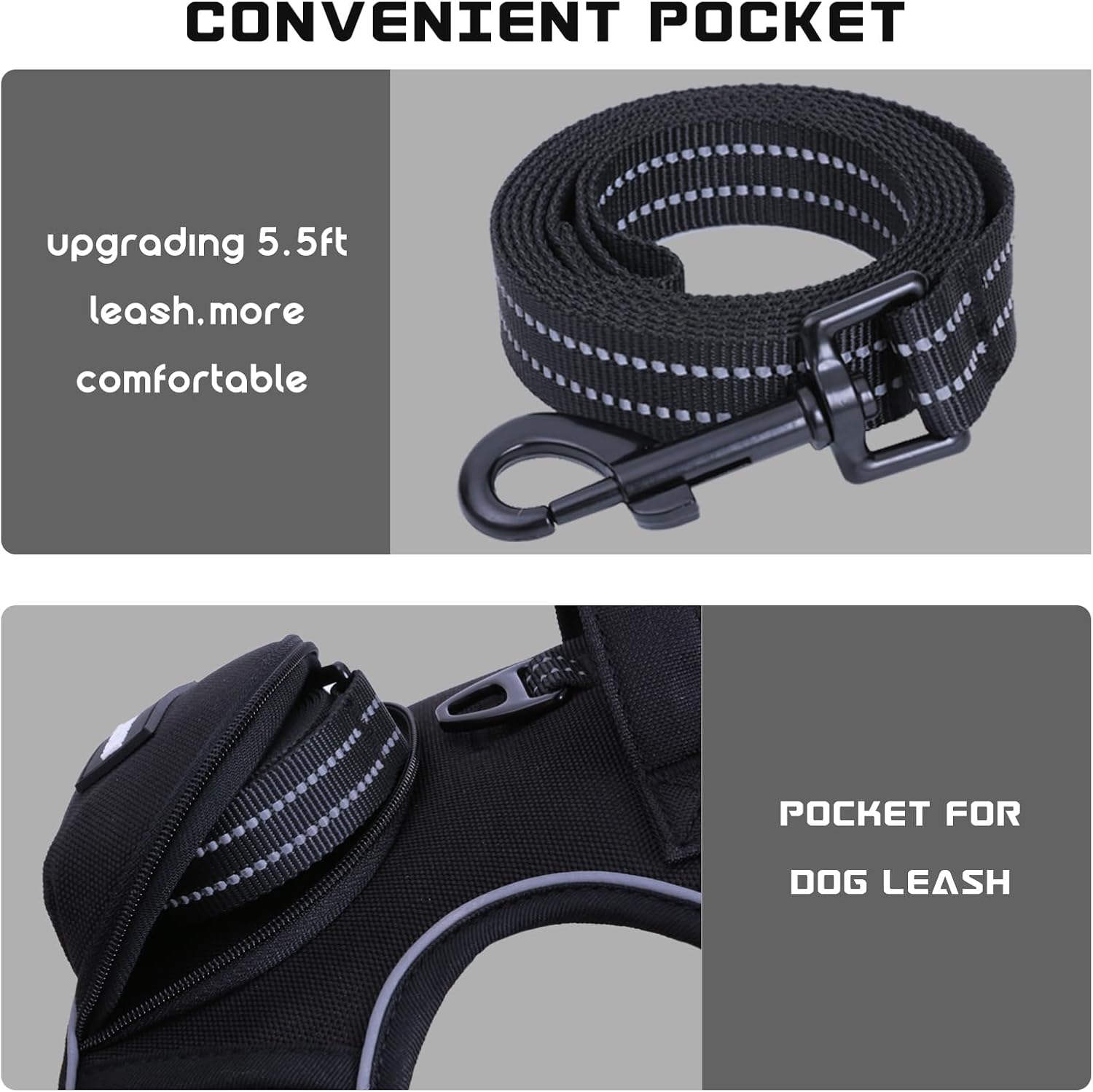 No Pull Dog Harness for Medium Dogs, Adjustable No Choke Pet Vest with Dog Leash Fit Smart Reflective Pet Walking Harness for Training Easy Control Soft Handle Black S