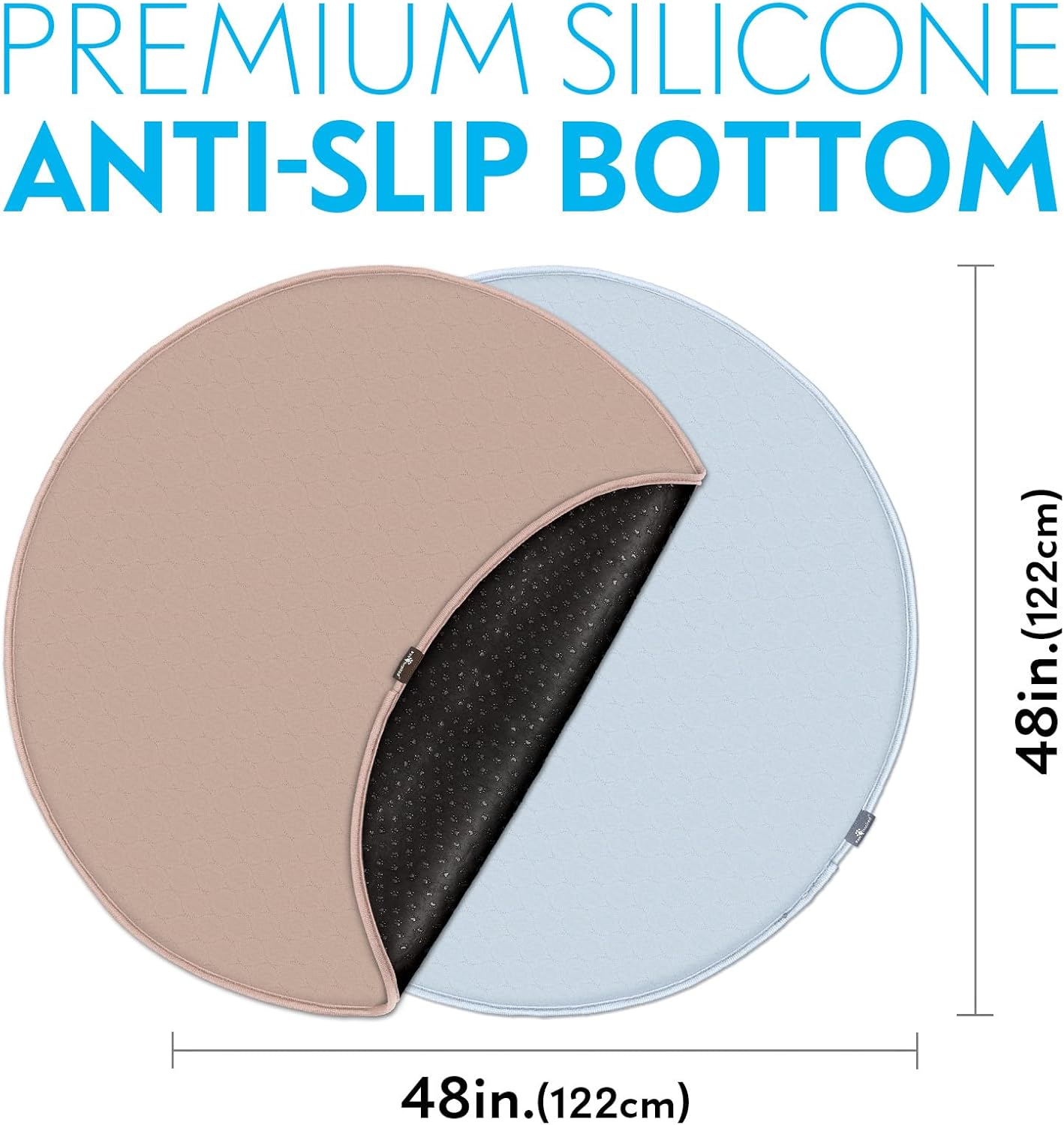 - SIZE 48 INCH: Not only can you use this pee pad for small or medium sized dogs or other animals, these round pads are also suitable for large dogs and all sizes and breeds, whether for travel or indoor use. On the go or in your home, these washable pee pads are very versatile and work for all life stages.