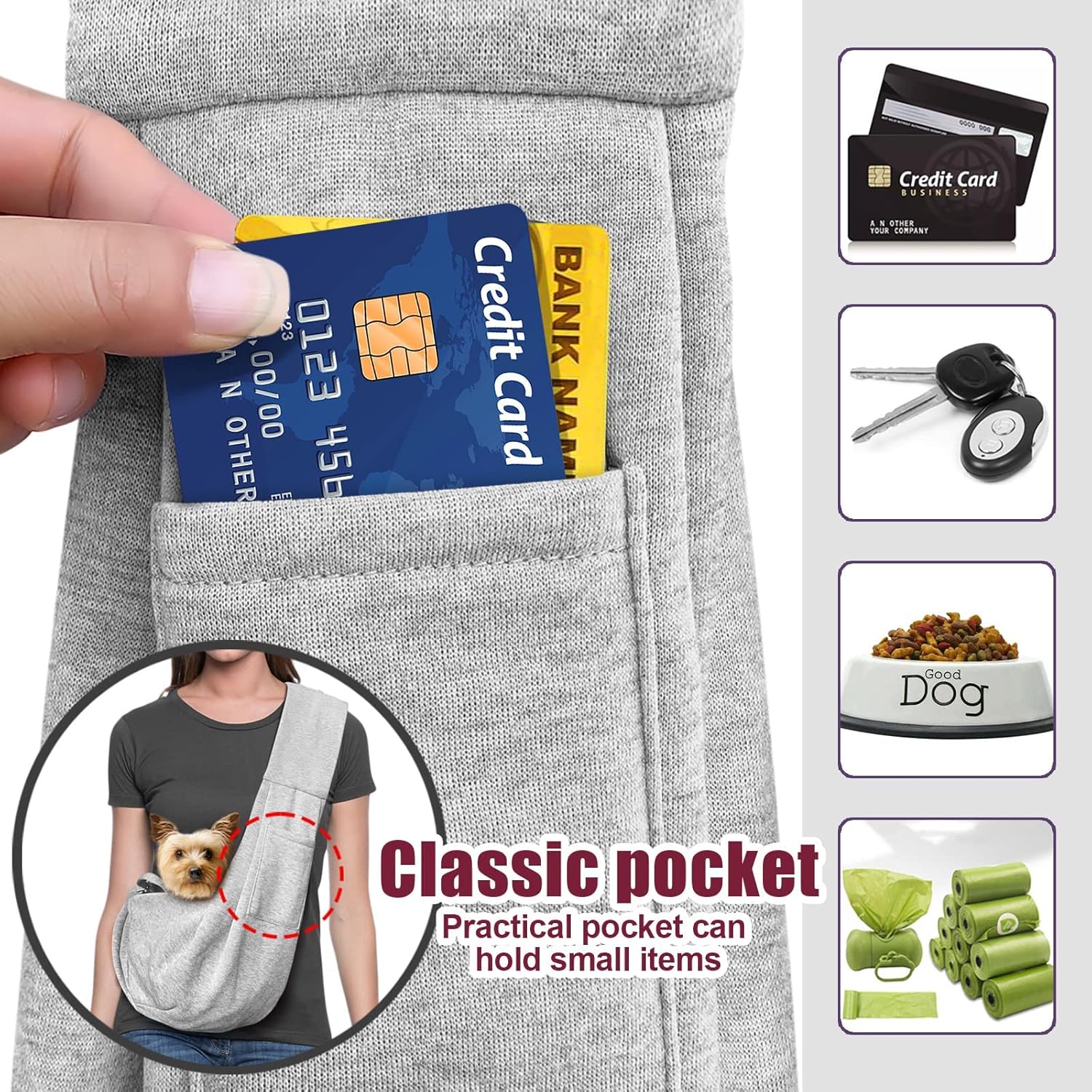 Pet Dog Sling Carrier for 3-10 lbs pet,Dog Purse Pouch,Dog Satchel,Reversible unadjustable Strap Travel Hand-Free Safe Bag Small Puppy Backpack (Grey)