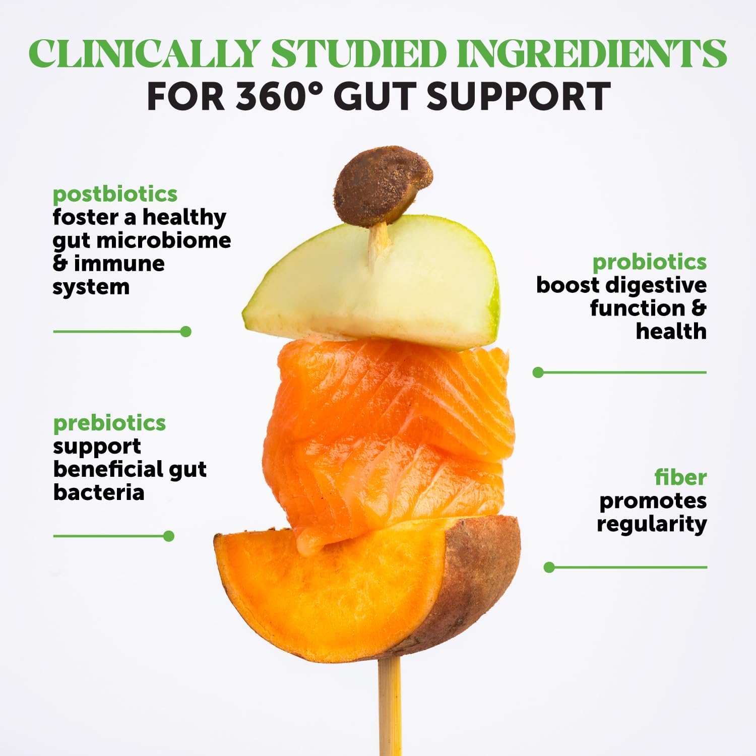 - Provide maximum support for their gut, immune, and bowel health: These easy-to-give chews contain key functional ingredients to help ease tummy troubles and grow healthy gut microbiomes, so your dog can feel their best. Our unique blend of natural soluble and insoluble fibers work together with other natural ingredients to improve stool quality, helping them feel more comfortable when itâs time to go. Plus, your dog will absolutely love the delicious natural chicken flavor!
